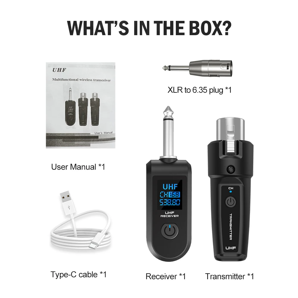 Wireless Microphone Transmitter Receiver System UHF XLR Adapter System for Dynamic Microphone Guitar Audio Mixer PA System DGNOG
