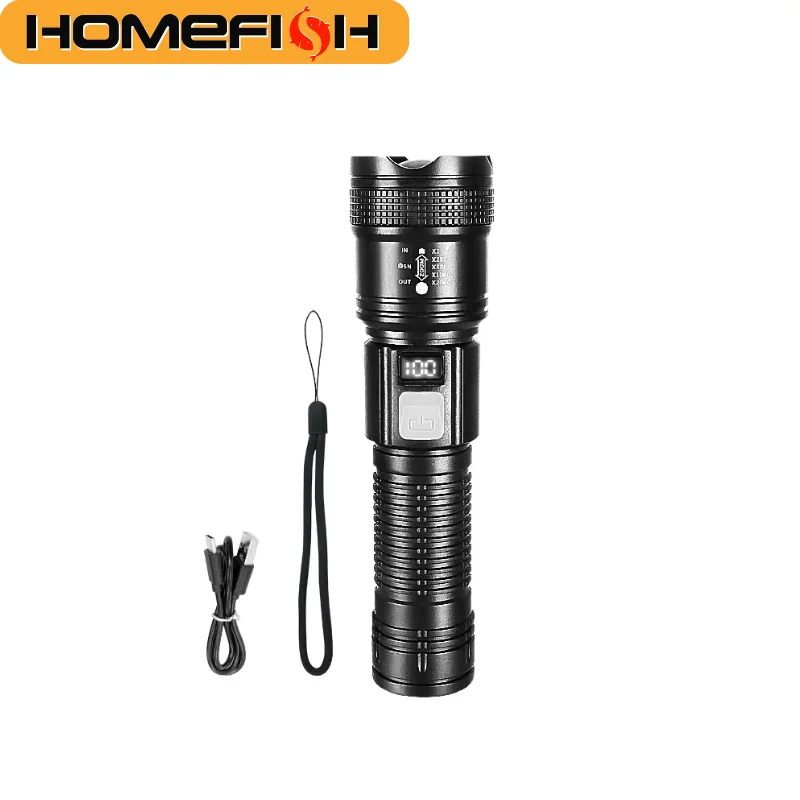 HOMEFISH Ultra-High Power Flashlight Digital Electronic Display Waterproof Torch Zoom Hand Light Outdoor Camping Lantern
