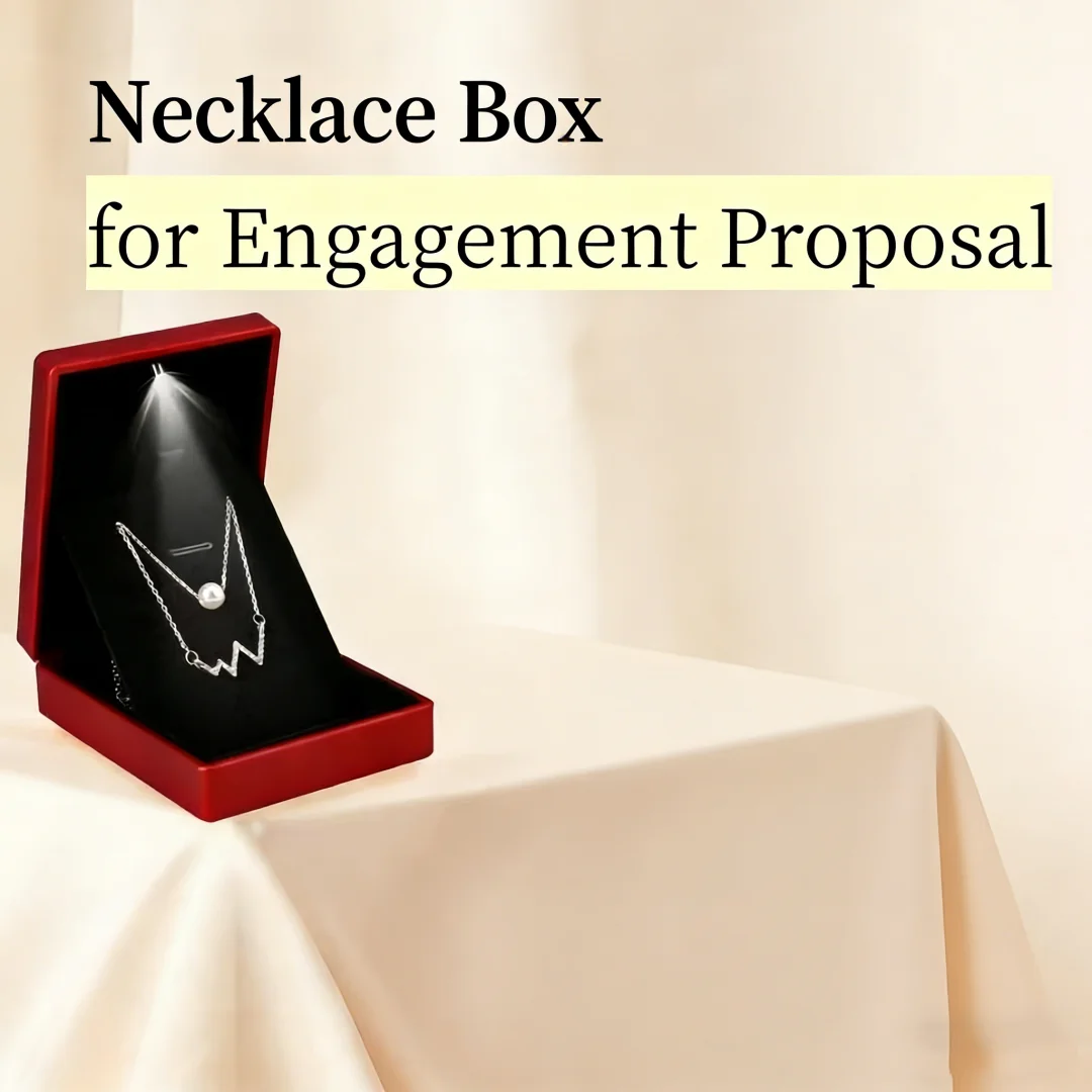 Pendant Box with LED Light Jewelry Case Square Shaped Box Velvet Jewelry Gift Boxes LED Necklace Box for Engagement Proposal