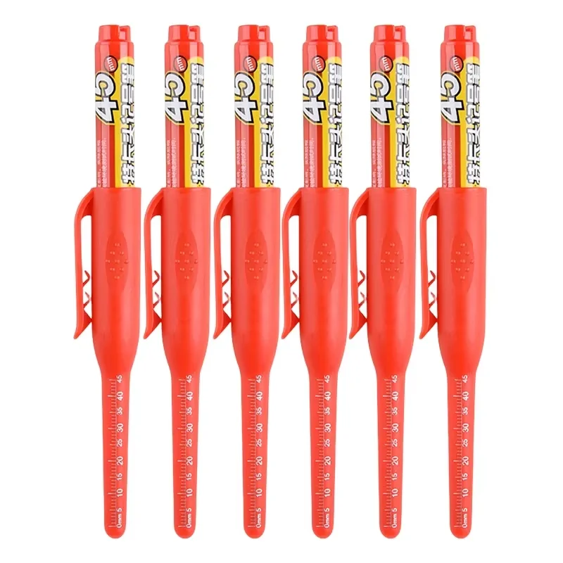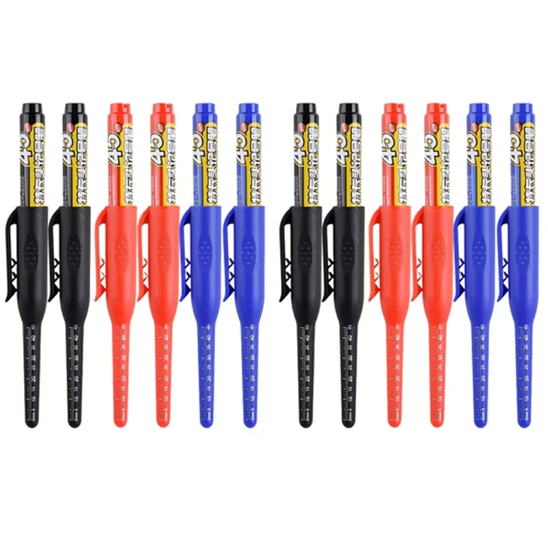 1-12Pcs Multi-Purpose 45mm Deep Drill Hole Long Nib Waterproof Marker Pens for Bathroom Woodworking Long Head Carpenter Pen