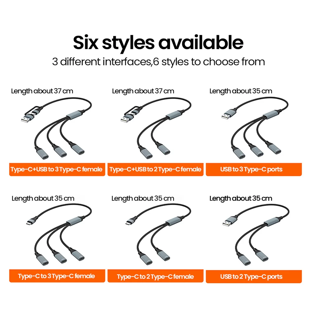 USB Type C HUB Multiple Splitter Adapter OTG Data Transfer 3/2 Port USB Power Charging Hub Cable Connector Adapter