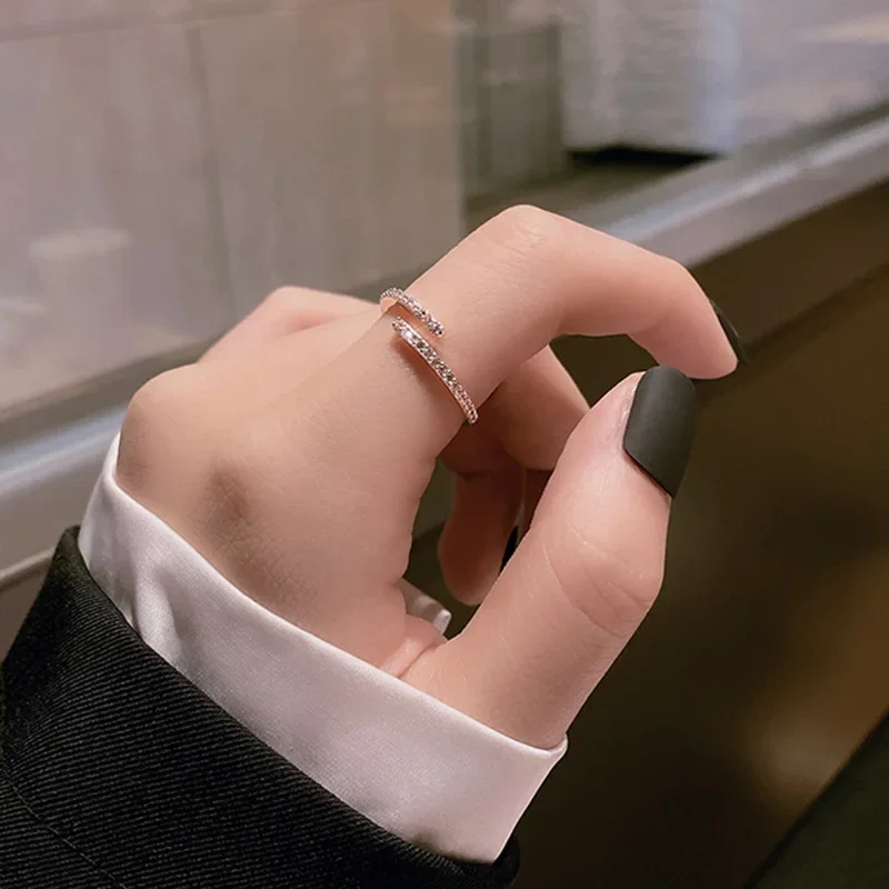 Fashion Simple Rose Gold Color Diamond Ring Female Adjustable Opening Rings For Women Jewelry 2023 New Custom Jewelry