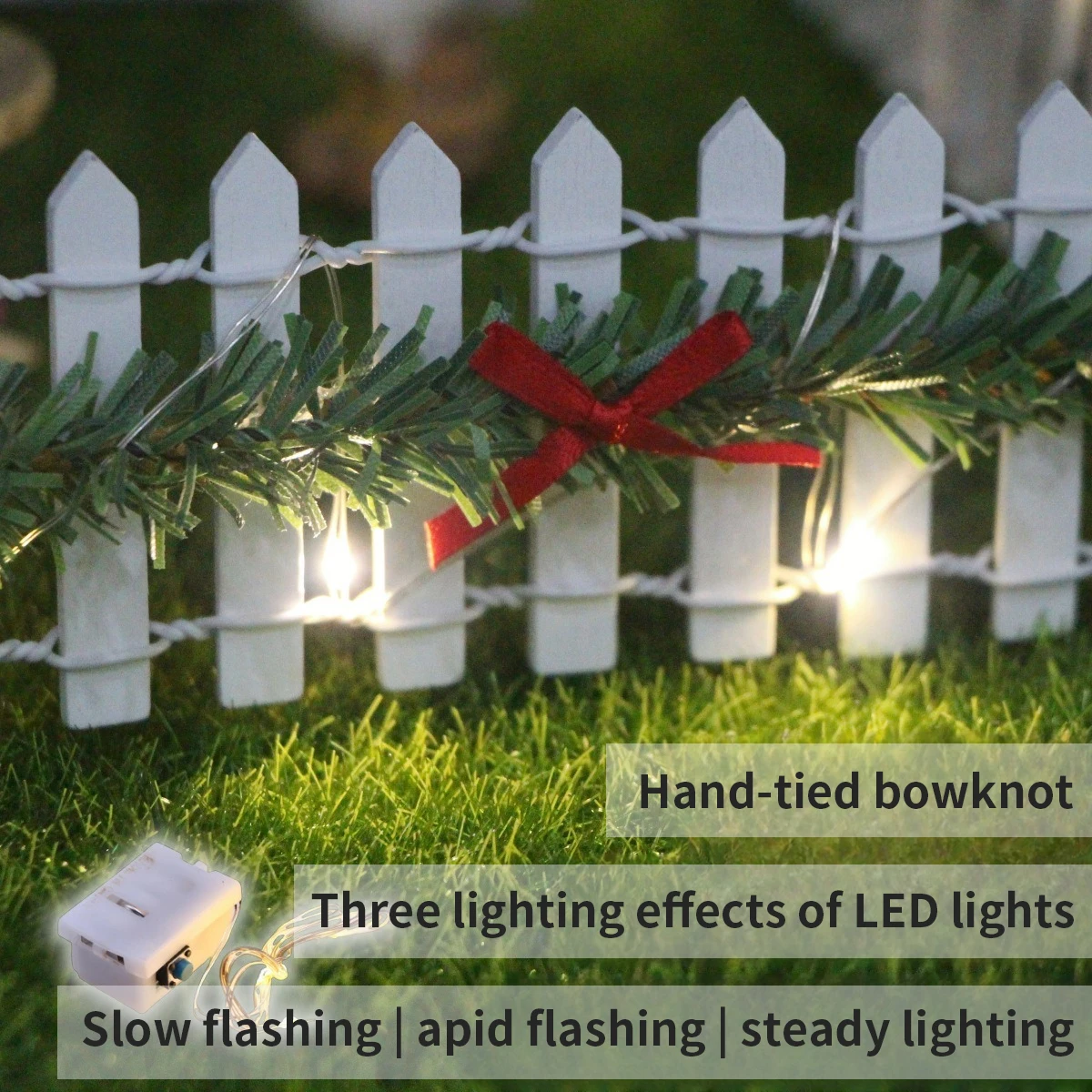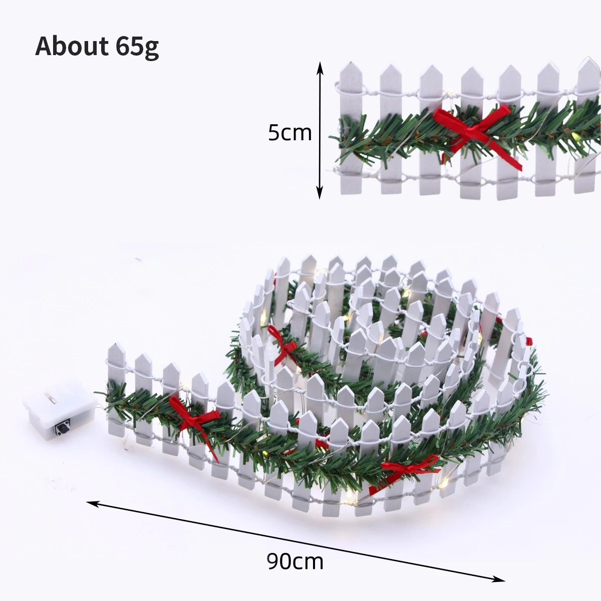 MicoLandscape Christmas Elf Fairy Garden Miniature Wooden Fence Handmade LED Light String Vine Landscape Greenery Evergreen Prop