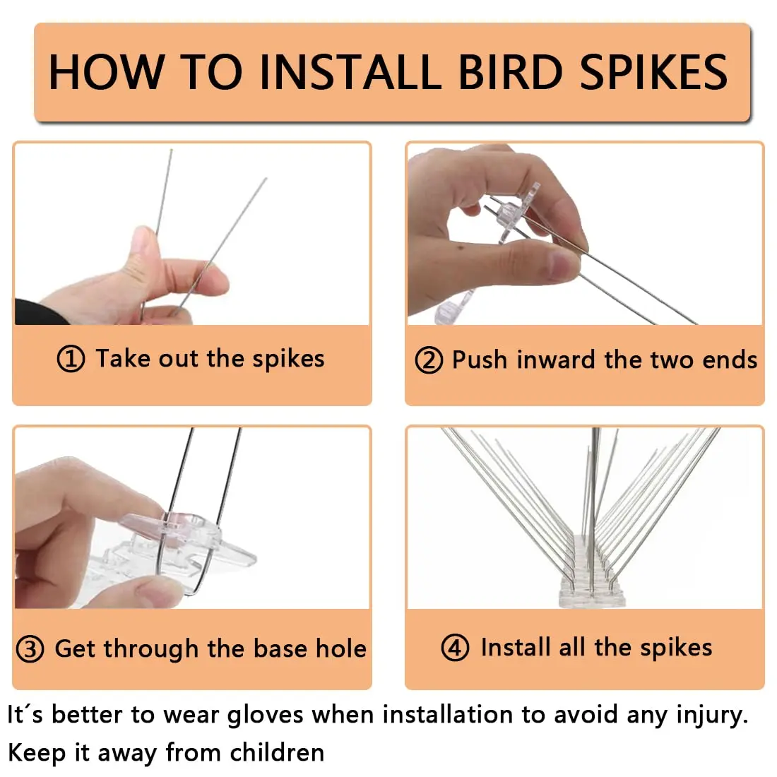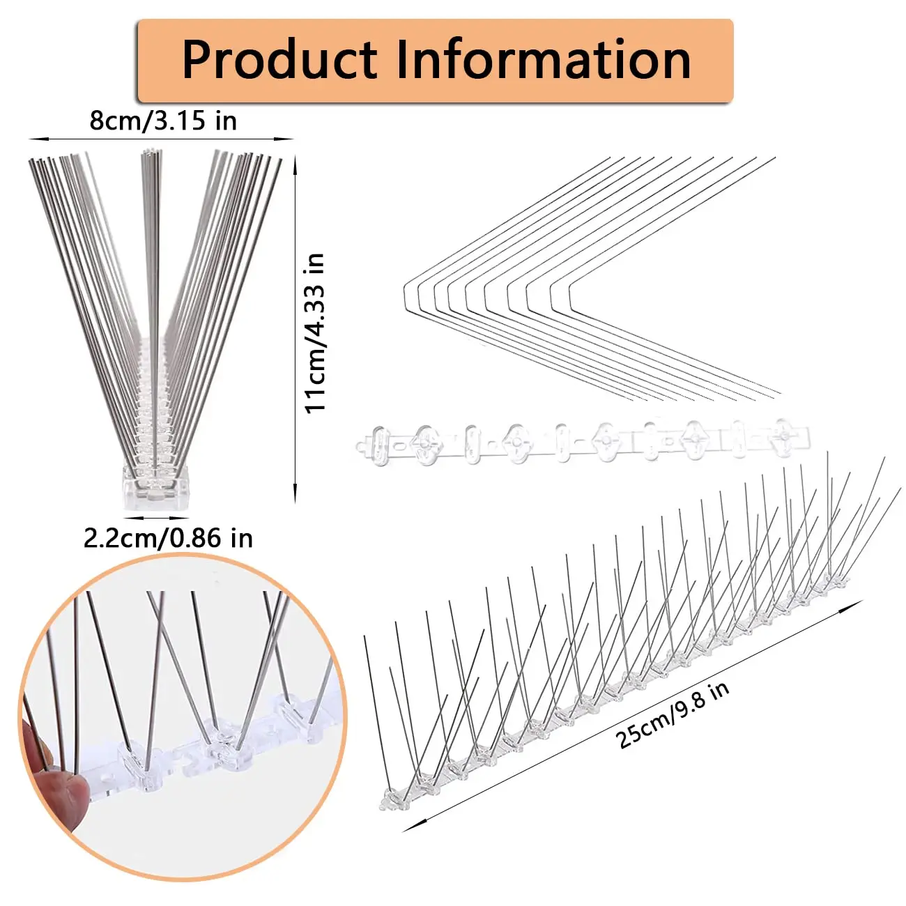 12Pcs Pigeon Spikes Stainless Steel Bird Repeller Set Deterrent Anti Bird Pigeon Squirrel Cats Repellent for Garden Fence Roof