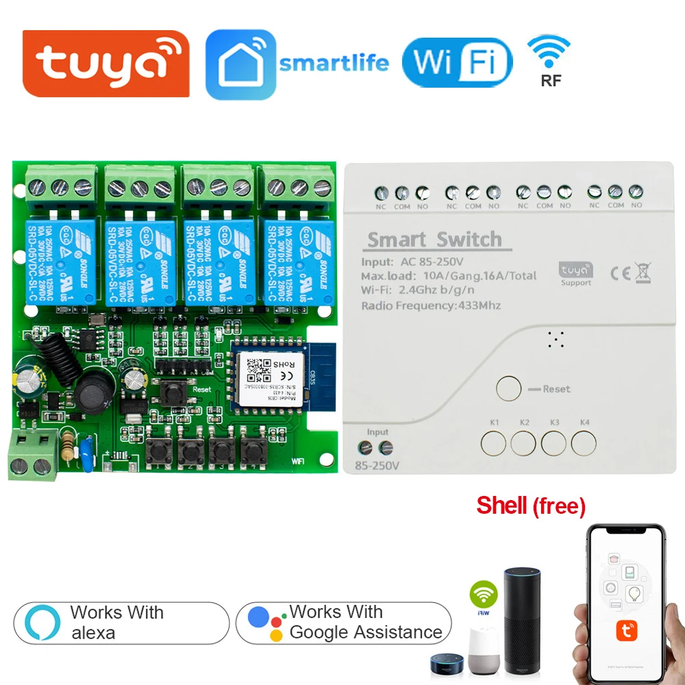 Clearance_Tuya Smart Wifi Switch Module 12V 24V 220V RF 433 Remote Control Appliance Control Module 4CH Relay Work With Alexa Go