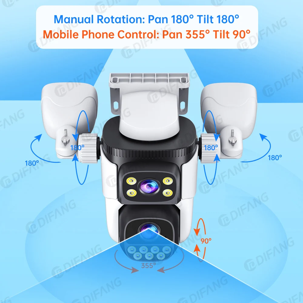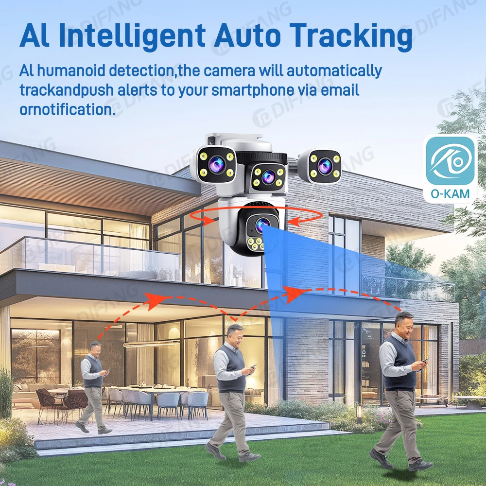 10K 20MP Four Screen Outdoor WiFi Cam PTZ 5X Zoom Night Vision Four Lens 10K Wireless CCTV Surveillance Cam Security Protection