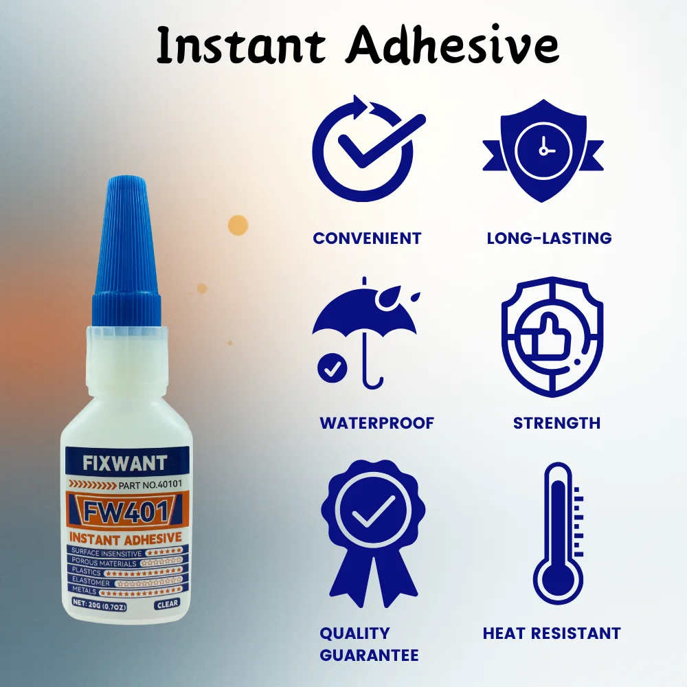 20g FW401/406/495/480 Super Glue Instant Quick-Drying Cyanoacrylate Adhesive Leather Rubber Wood Metal Strong Bond Liquid Glue