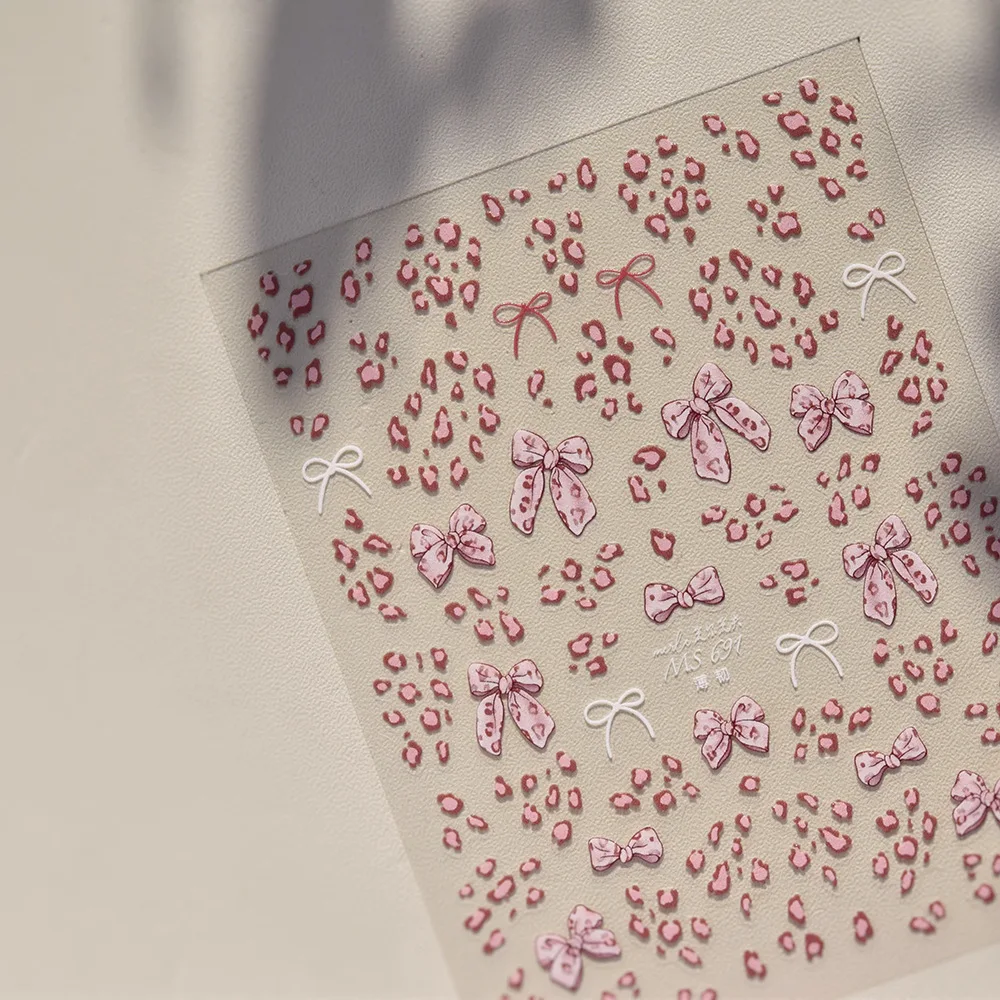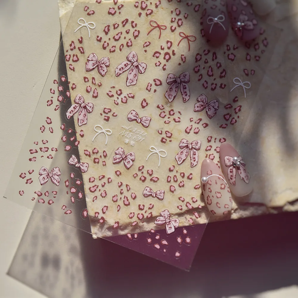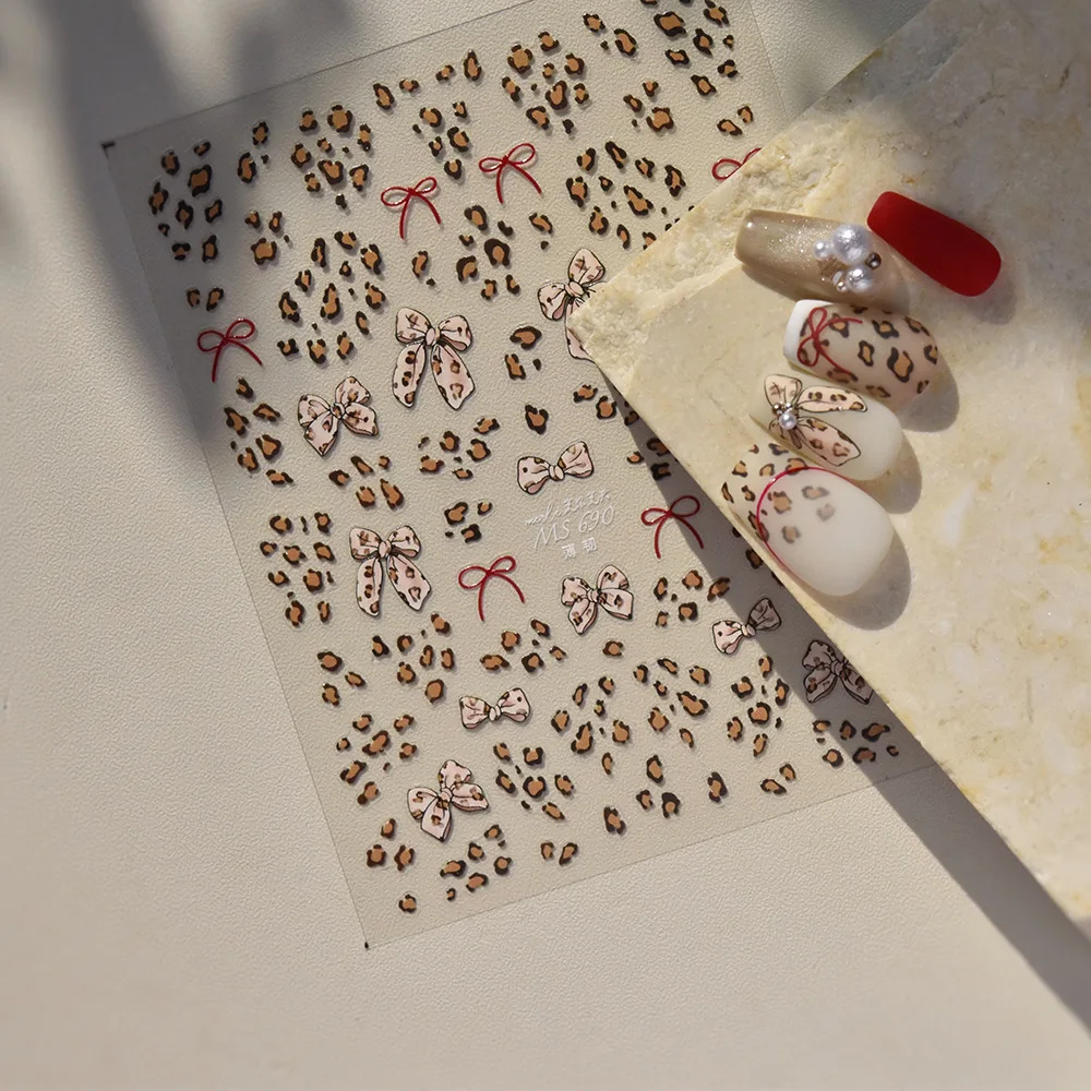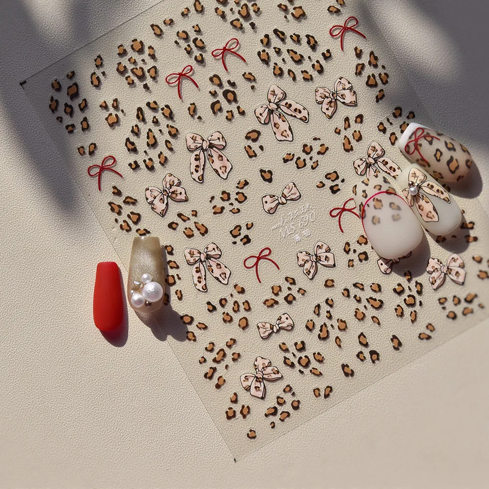 Autumn Winter Leopard Print Bow Nail Art Stickers 3D Thin Tough Nail Sticker Cute Bow Self Adhesive Nails Decorations Decals DIY