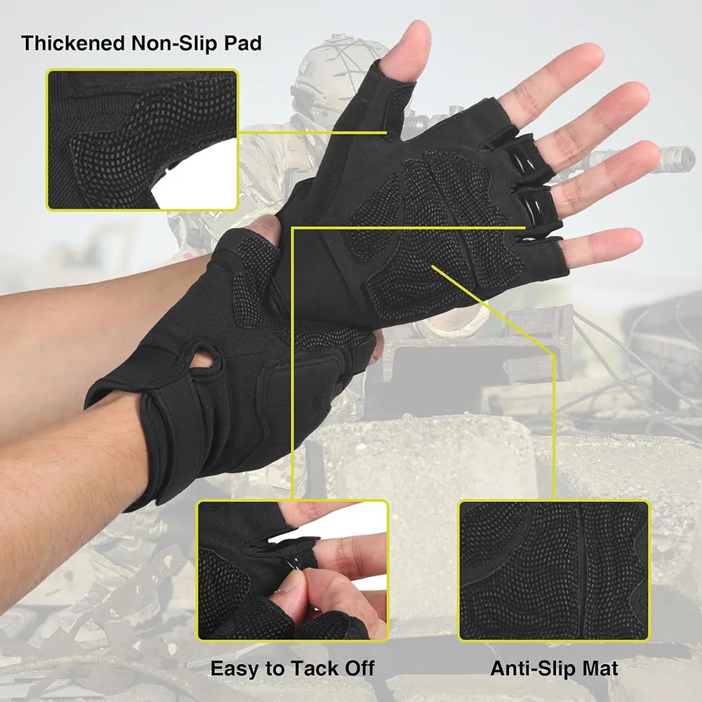 Fingerless Tactical Gloves Padded Lightweight Breathable Half Finger Cycling Glove for Rock,Motorcycle, Climbing, Outdoor Sports