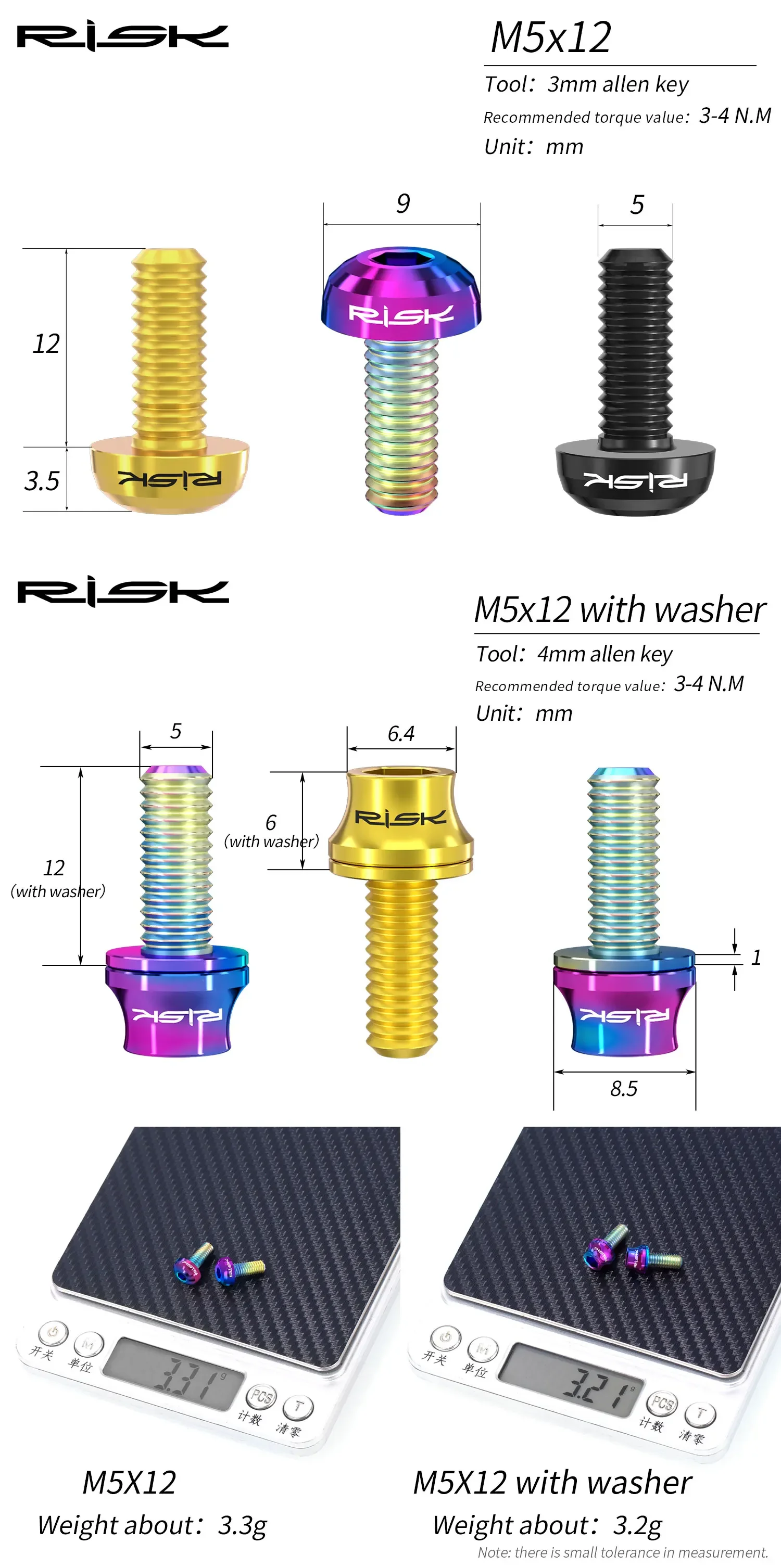 RISK M5x12 Titanium Bicycle Water Bottle Cage Fixing Bolts Road Mountain Bike Water Holder Screws Air Pump Holder Fixed Screws