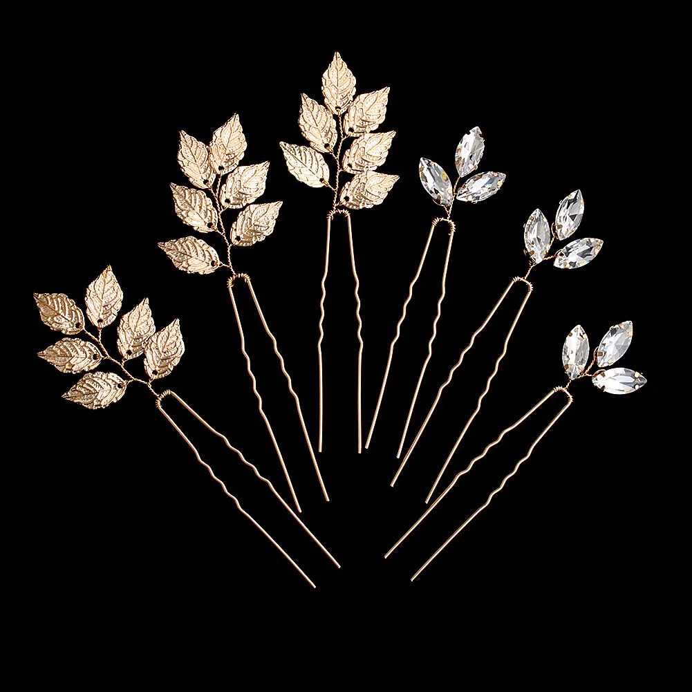 Luxury Gold Leaf Flower Hair Pins Set Bridal Wedding Headpieces Princess Hair Accessories Jewelry Holiday Gifts For Women