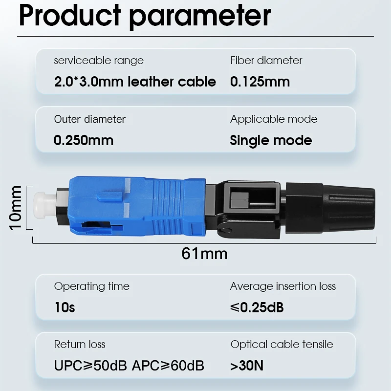 FTTH Optical Fiber Quick Connector Single Mode SCUPC/APC Leather Fiber Optic Cable Cold Splicing Fast Connector Assembly Tools