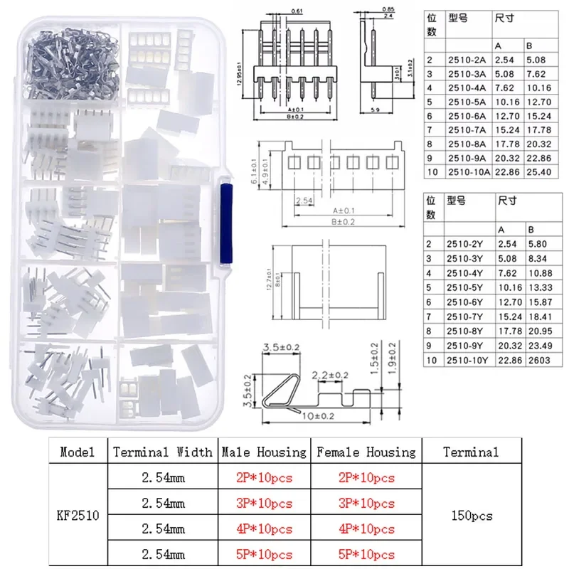 Pin1.25mm PH2.0mm XH2.54mm MX3.0mm VH3.96mm Pitch Terminal Male Female sm Connector Assorted Kit Box