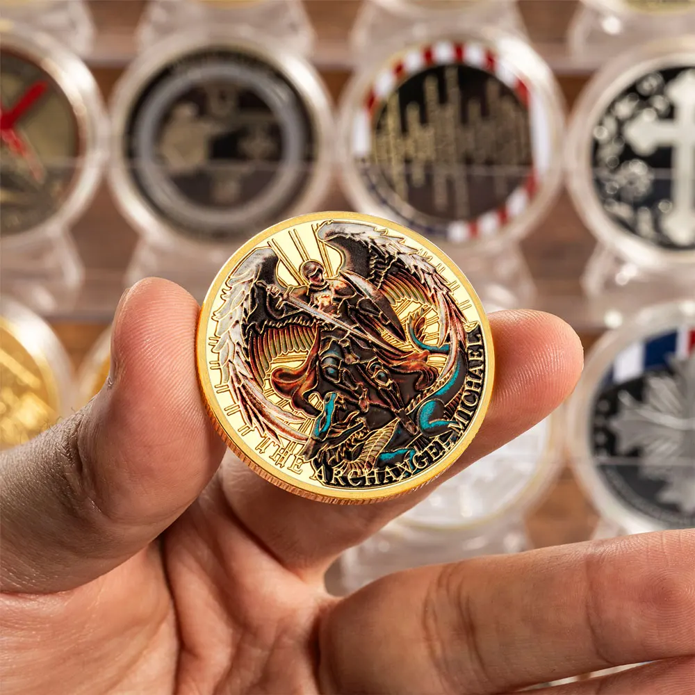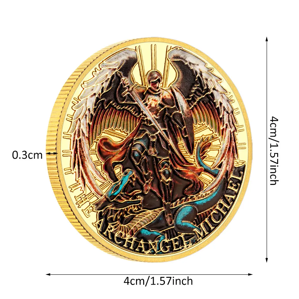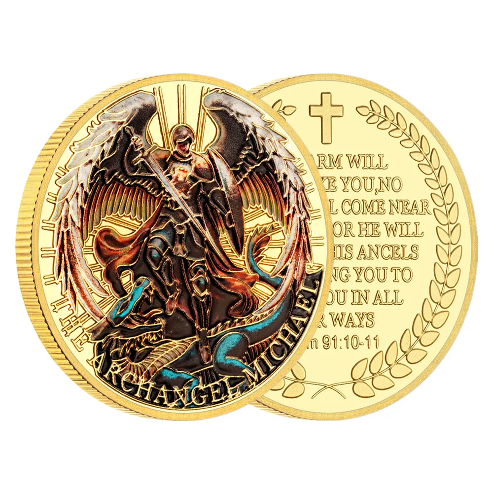 The Archangel Michael Collectible Coin Lucky Coin Golden Plated Color Guardian Angel Commemorative Coins