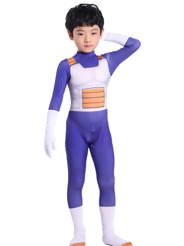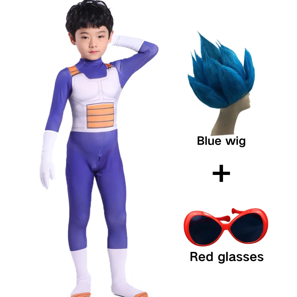Anime children's Vegeta role-playing costume set, jumpsuit with three color wig and big eyes costume