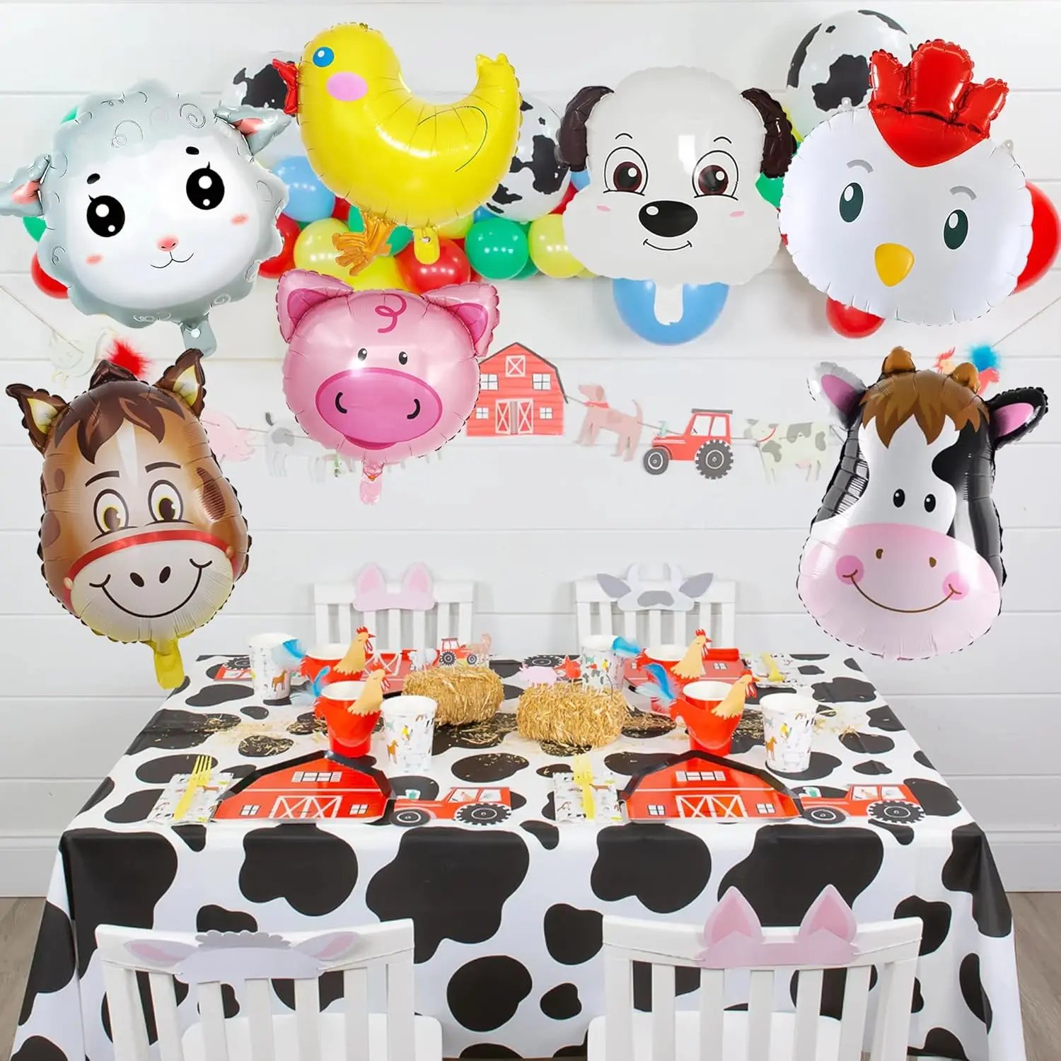 7pcs Farm Animal Balloons for Farm Birthday Party Decorations Supplies Cow Donkey Sheep Pig Chicken Foil Balloon Baby Shower