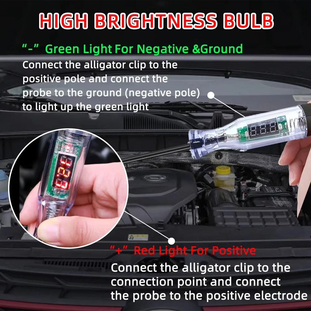 6V 12V 24V Auto Truck Voltage Circuit Tester DC Digital Display Long Probe Pen Light Bulb Automobile Diagnostic Tool Auto Repair