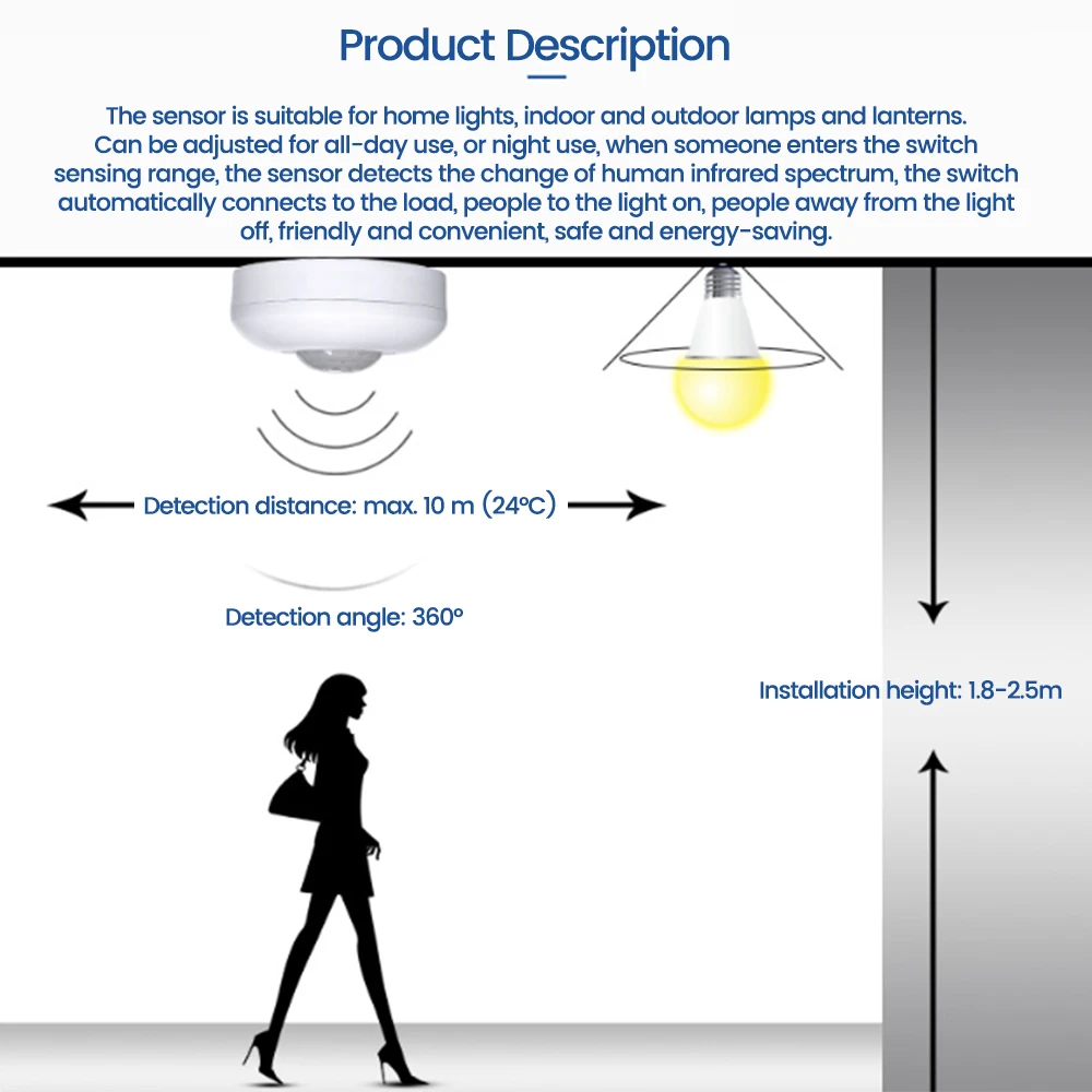 AC 85-265V Intelligent Human Infrared Sensor Switch Ceiling Mini Sensor 802 Ceiling Sensor Switch