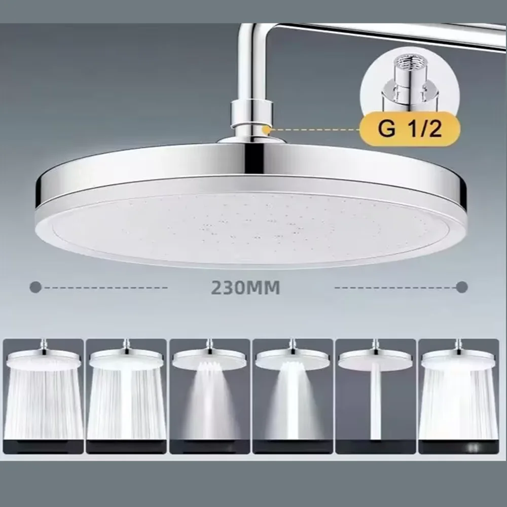 New 6 Modes Large Flow Supercharge Rainfall Shower Head 230mm Round High Pressure Top Spray Rain Showerhead Bathroom Accessories