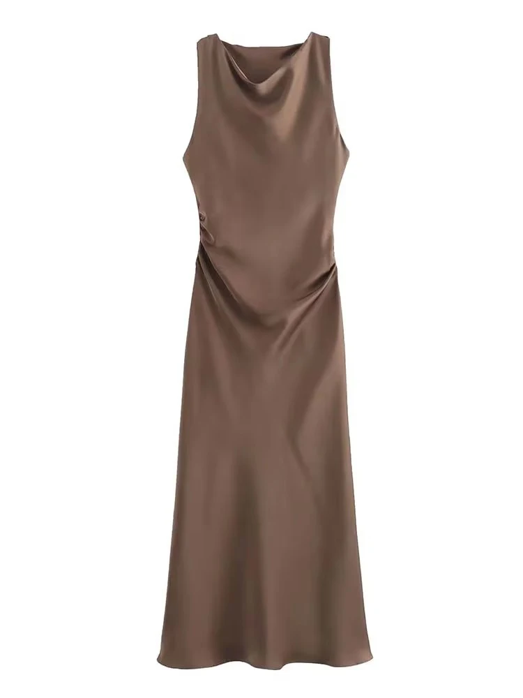 Satin Long Dresses for Women 2024 Summer Slip Midi Dress Woman Evening Party Dress Sleeveless Female Elegant Dresses