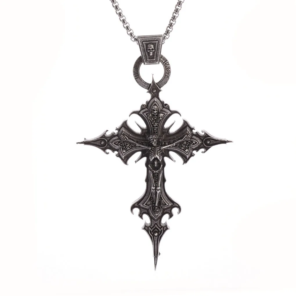 Gothic Crucifixion Skull Cross Pendant Necklace Catholic Prayer Jewelry for Men and Women Punk Trendy Jewelry