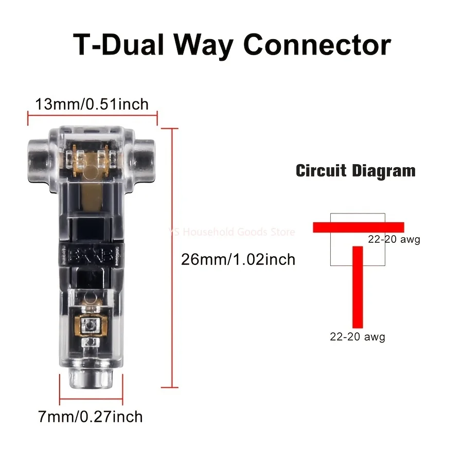 10/20/30Pcs t Type 1 Pin Low Voltage Wire Connector, Quick Solderless Wire Splice Connector, t Tap Wire Connectors, No Stripping