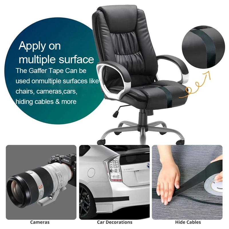 Premium Grade Heavy Duty Gaffer Tape Non-Reflective Multipurpose Water Resistant Floor Tape For Electrical Cord Black Gaff Tape