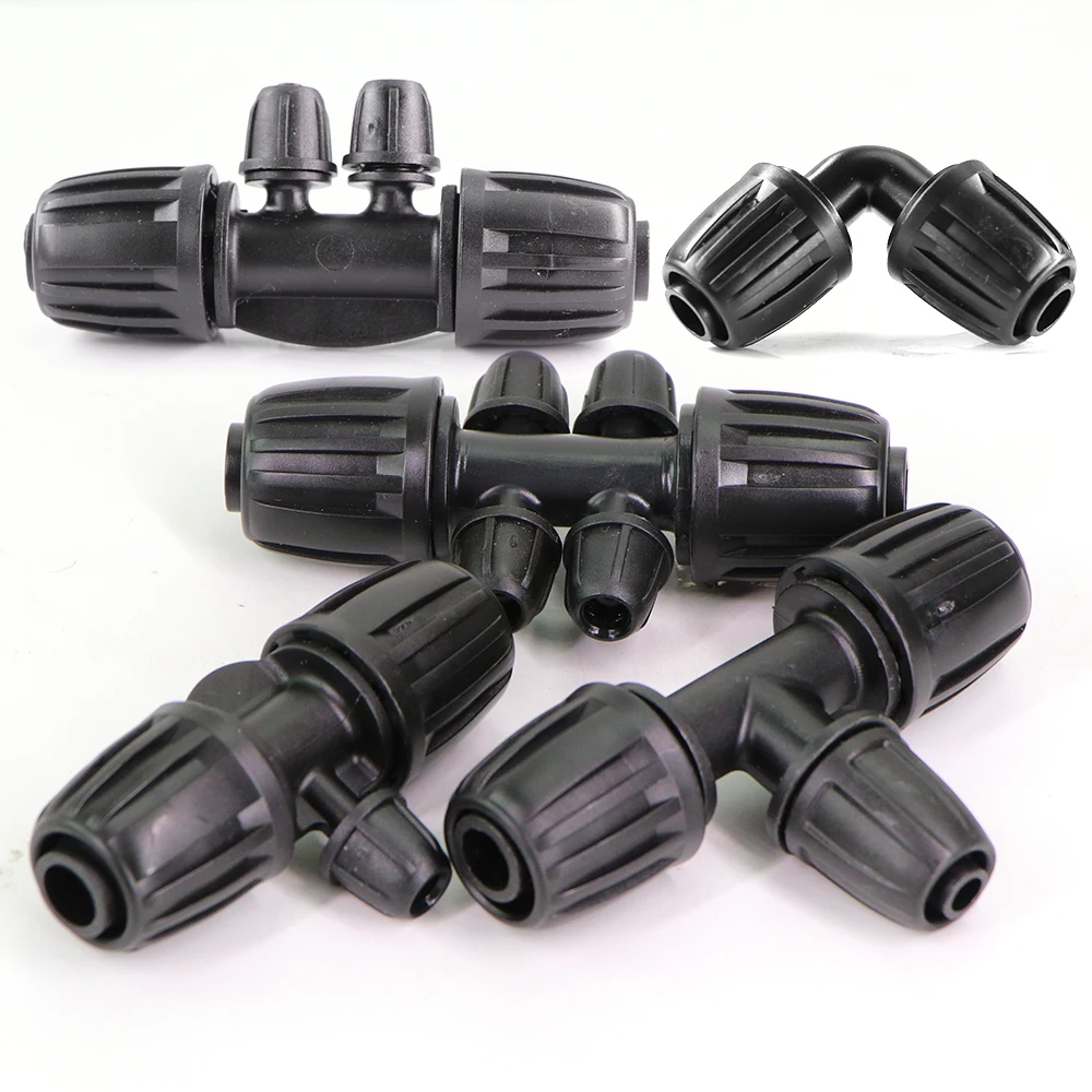 10PCS 16mm PE Pipe Locked Connector 1/2'' to 1/4'' 3/8'' Hose 4/6-Way Coupling Joint for Garden Tube Fittings Tee Water Splitter
