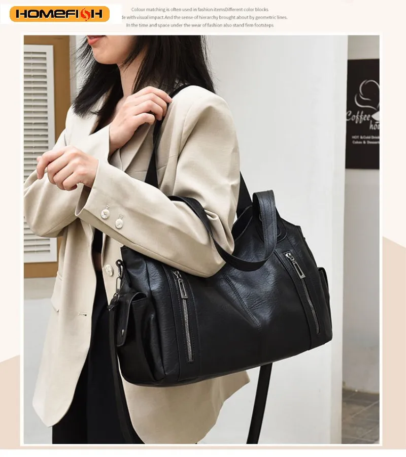 HOMEFISH Soft Interior Compartment Shoulder Bags High Quality Contrasting Colors Bags for Women Fashion Zipper Pu Handbags