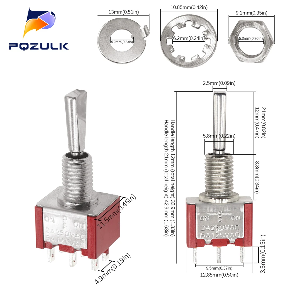 Mini Toggle Switch 3 Position 2 Position ON OFF ON DPDT SPST DPST 6A 125VAC 3A 250VAC Latching Flat Handle for Car Truck