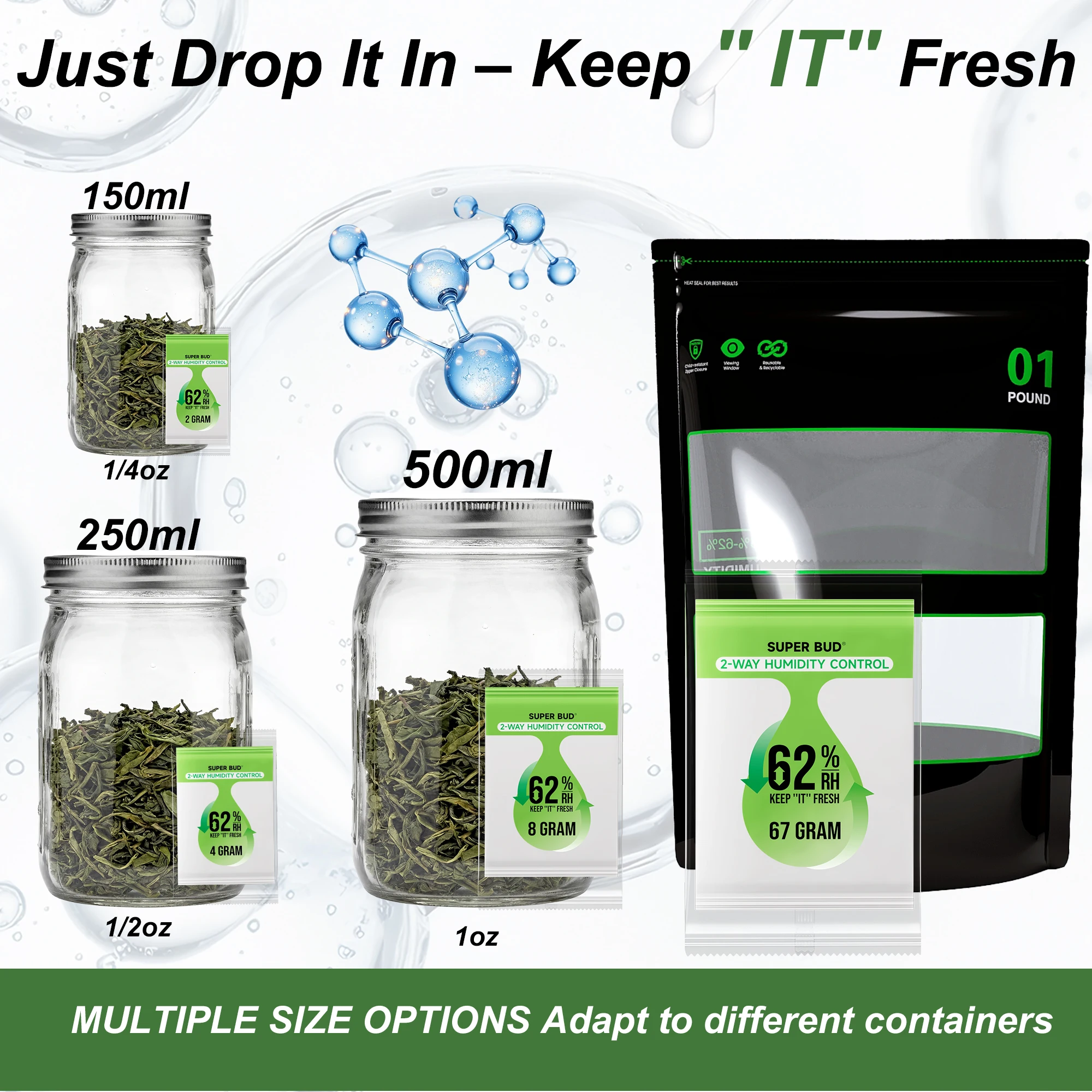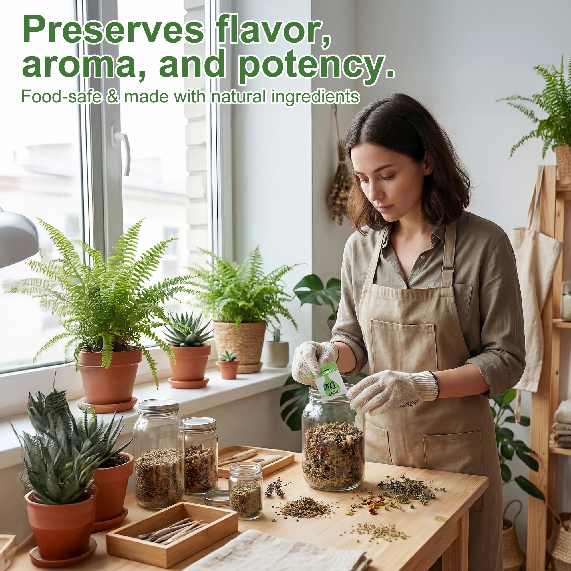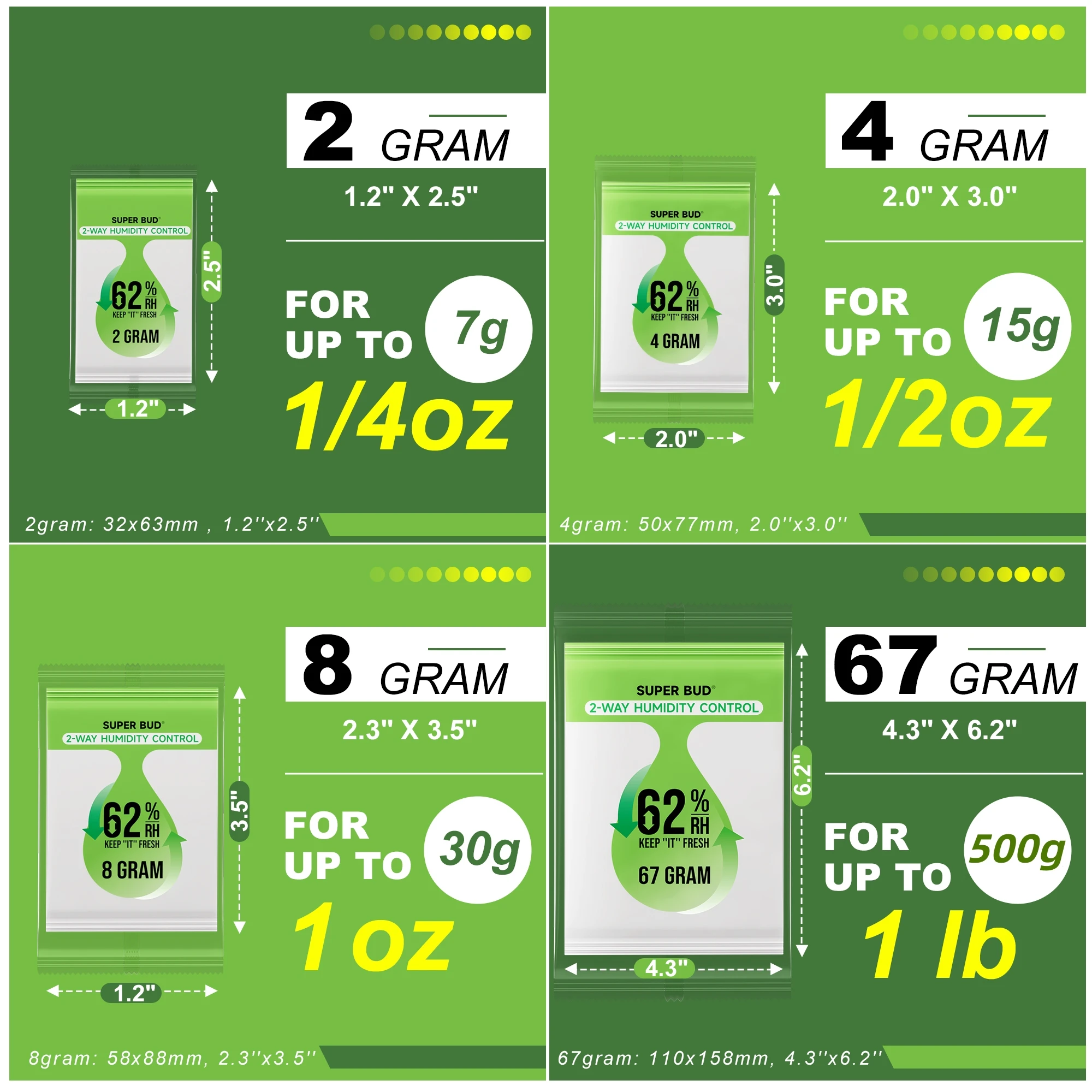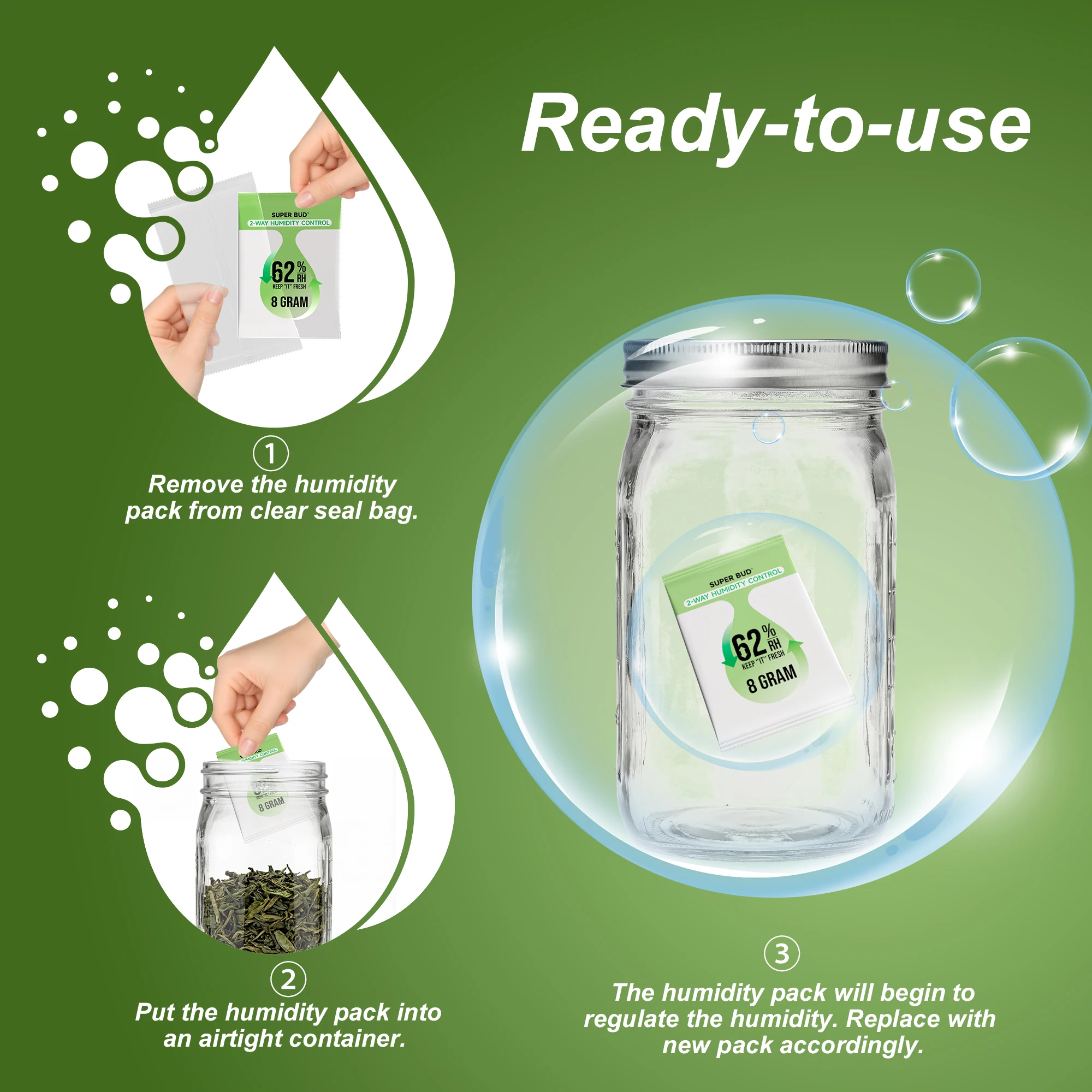 2-Way Humidity Control Packs Size 4g/ 8g, 62% RH for Curing&Storage Flower Buds, Herbs Moisture Balancer, Hydration Packets