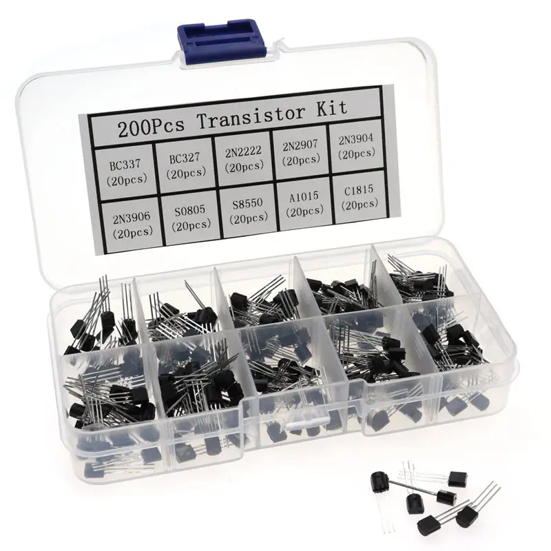 200Pcs Transistor Kit BC327 BC337 2N2222 2N2907 2N3904 2N3906 S8050 S8550 A1015 C1815 PNP/NPN 10 Values TO-92 Transistors Set