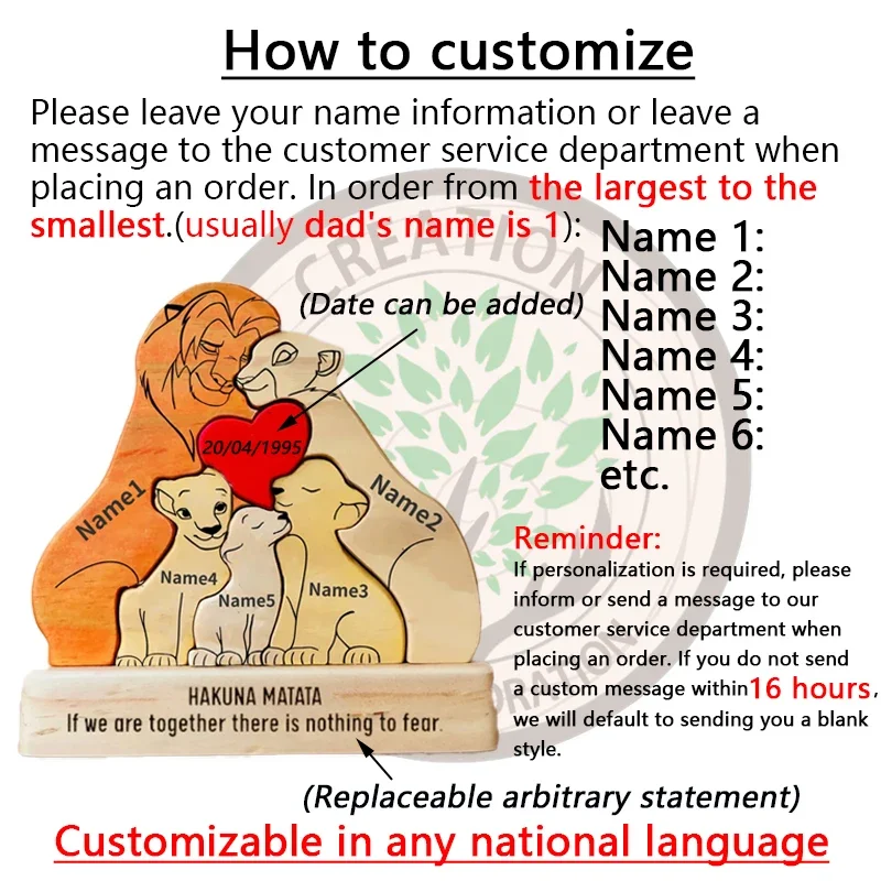 ALI shop - rezultati pretrage ... ... Personalized Art Family Puzzle Free Custom Name Wooden Lion Puzzle Home Decor Gifts for Family Warm Gifts Anniversary Keepsake ::: 2021 ::: :::