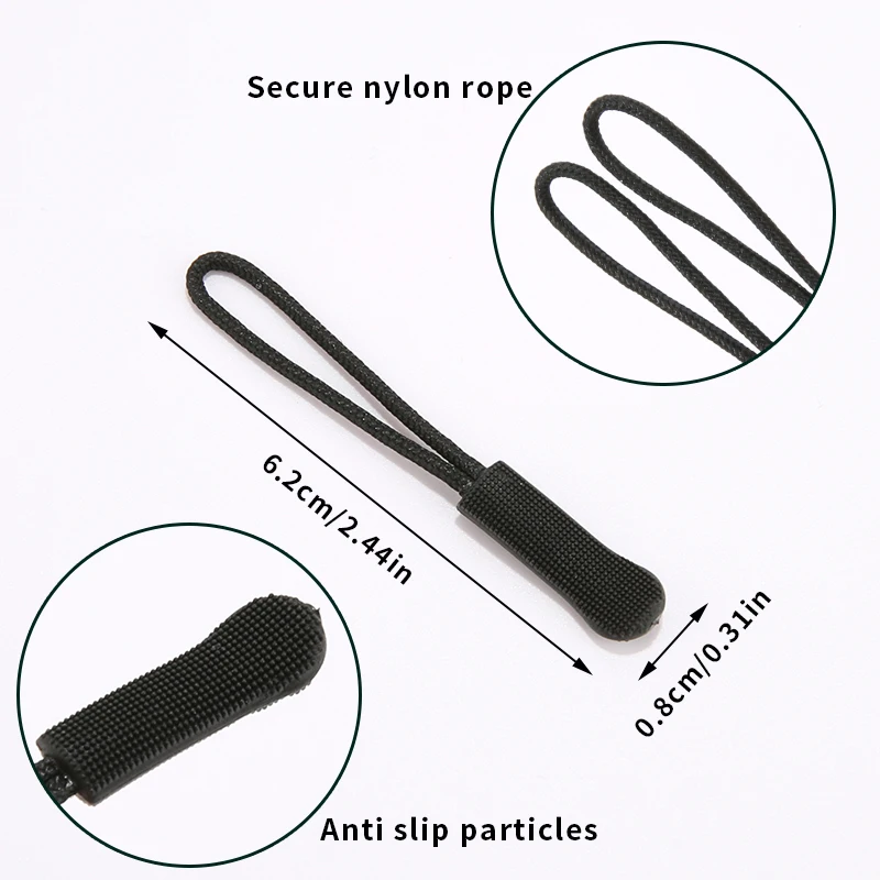 5/10/20PCS Zipper Head Extension Cord Tags Pulls Slider Cord Rope Puller Ends Lock Zip Clip Buckle for Bag Outdoor
