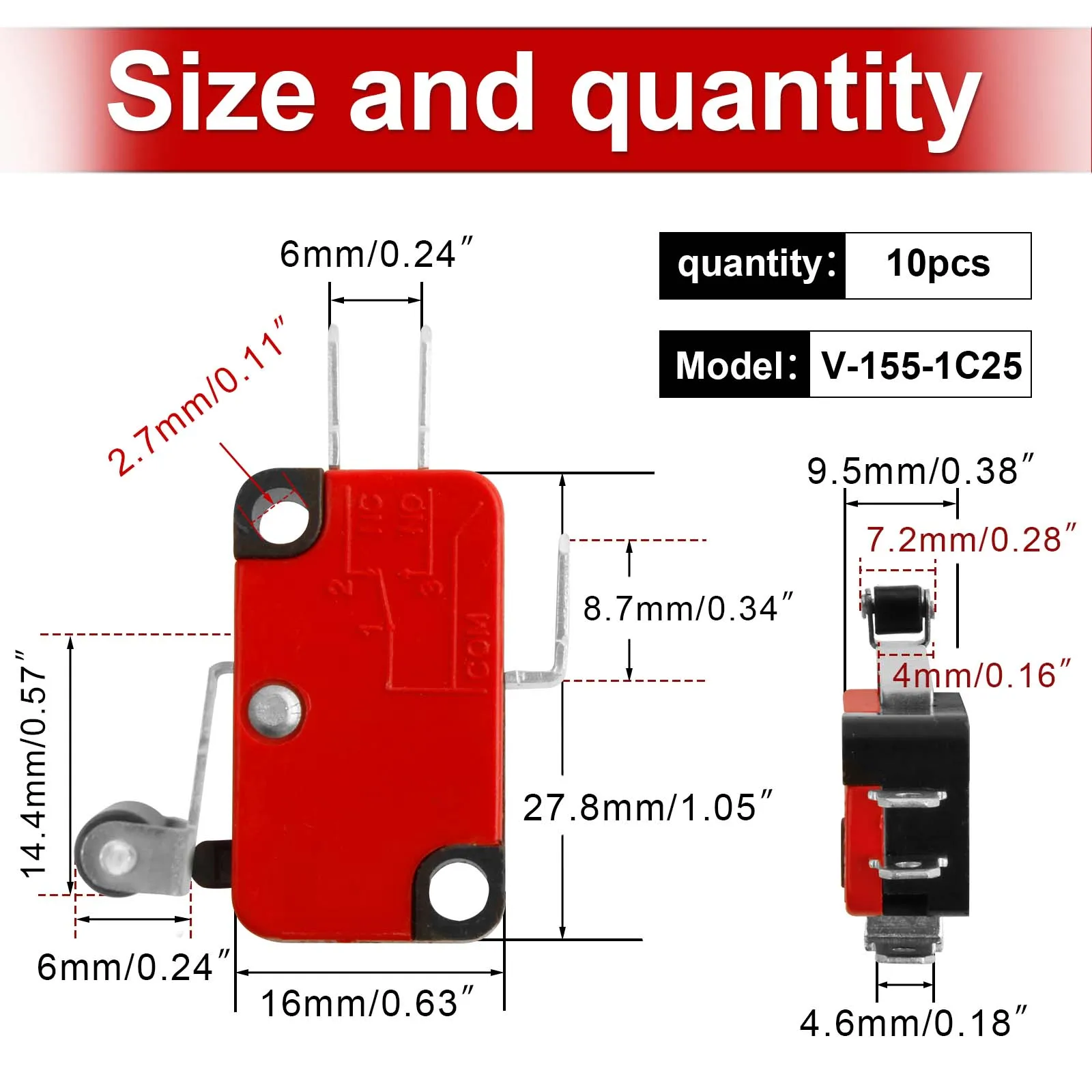 10pcs Micro Limit Switch Long Straight Hinge Lever Arm Roller SPDT Snap Action Button 1no 1nc V-151-1C25 - V-156-1C25