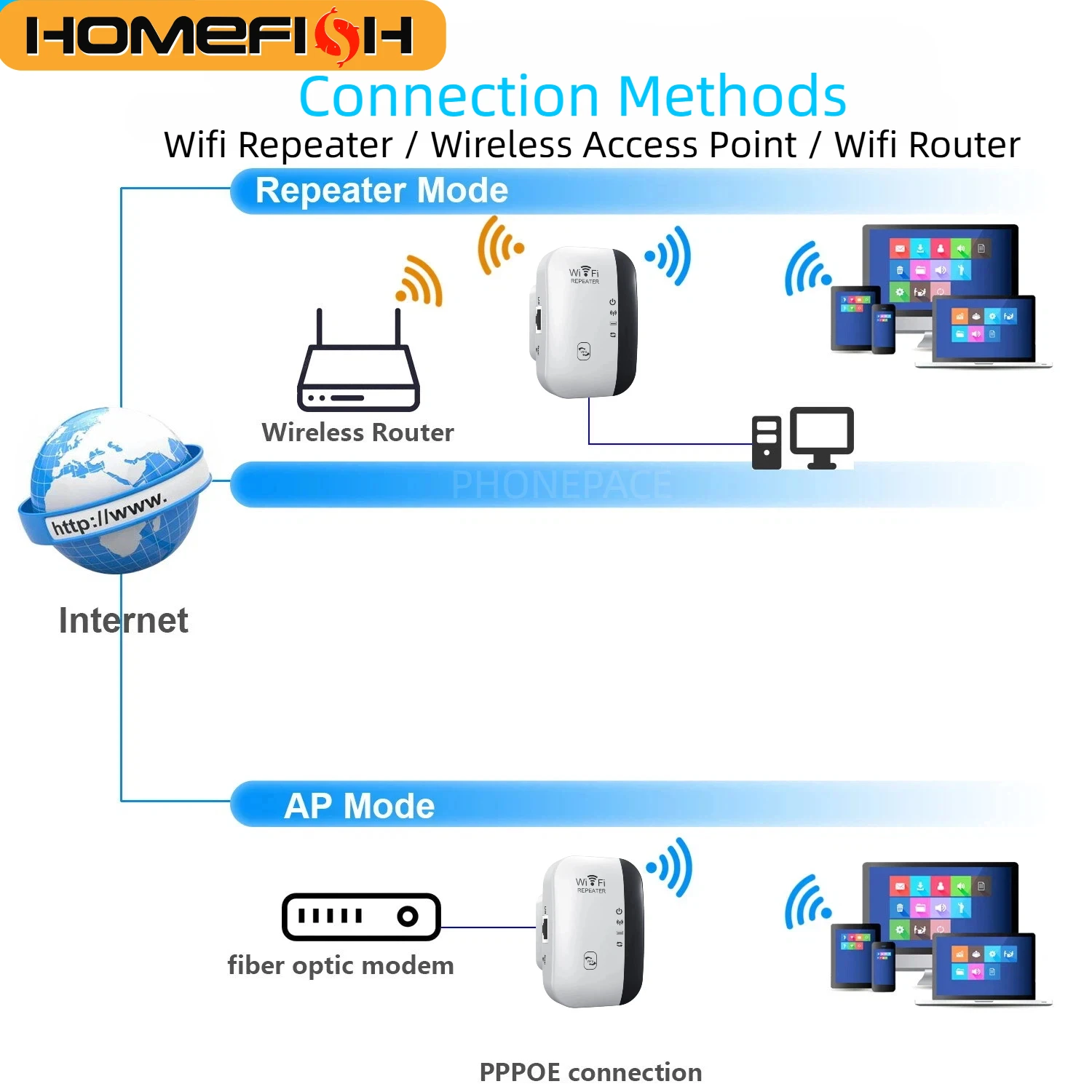 aliexpress , ali , shop , ali shop , online , prodavnica , online shop , online prodavnica , kupujem , prodajem , HOMEFISH WiFi Extender 300Mbps Wireless Signal Repeater 2.4G WiFi Amplifier with LAN Port, WPS One-Click Connection, WiFi Range