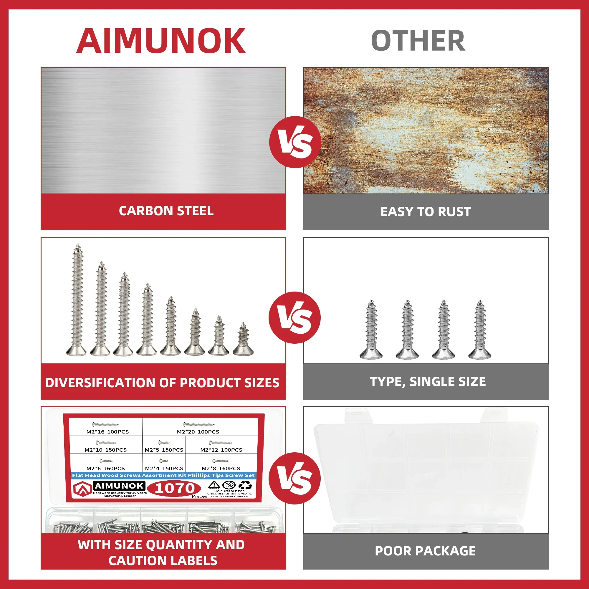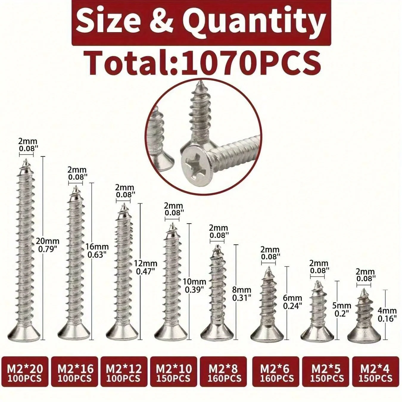 1070pcs Self Tapping Screw Assortment Kit M2 Wood Thread Nail Screw Sets Tapping Screw Assortment Kit Lock Nut Wood Thread Nail