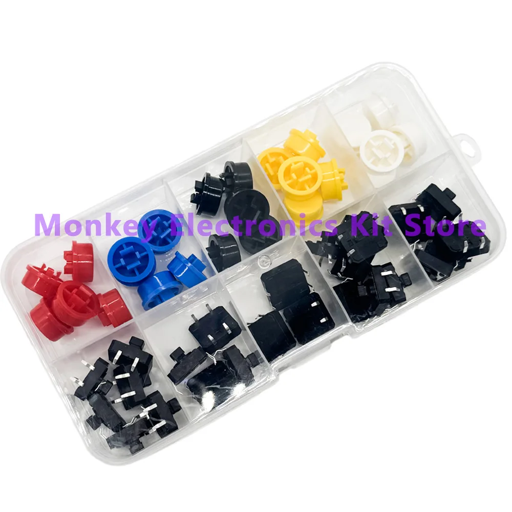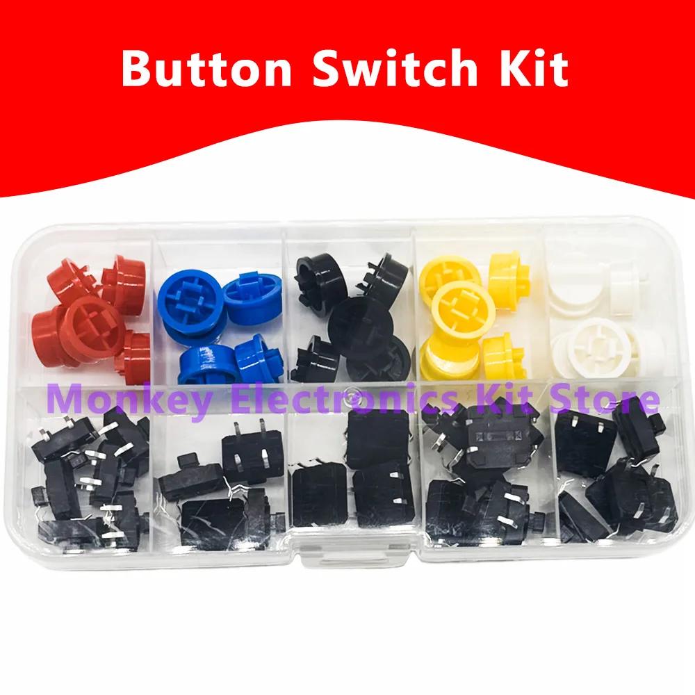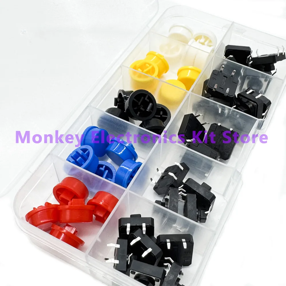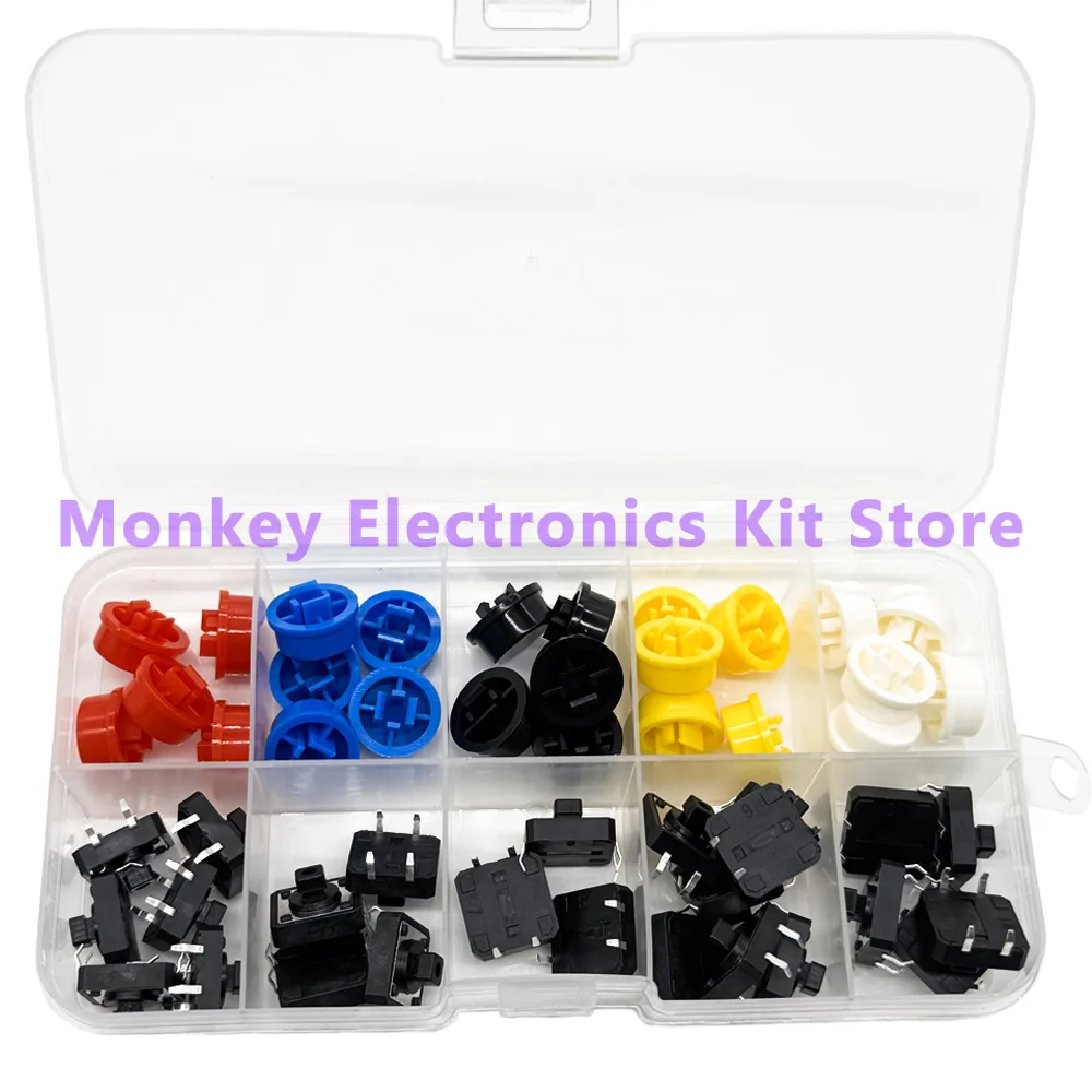 25PCS Tactile Push Button Switch Momentary 12*12*7.3MM Micro Switch Button Circular Cap Kit (5 Colors) for R3 Board Switchs Kit