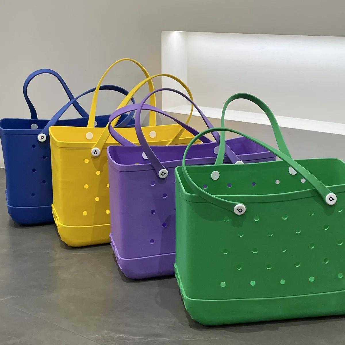 S/M/L Beach Bag EVA Waterproof Rubber Travel Picnic Storage Basket Women Shopping Shoulder Handbag Jelly Sac Croc Beach Tote Bag