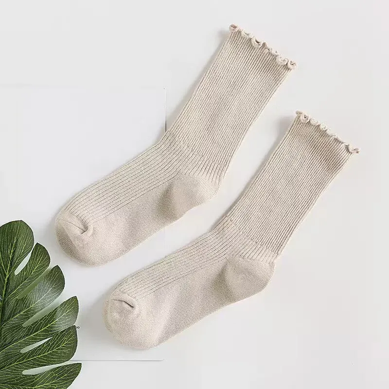 ALI shop - rezultati pretrage ... ... 1Pair Women's Ruffled Mid-Calf Socks - Breathable, Sweat-Absorbing & Comfortable, Solid Color Set for Spring & Autumn ::: 2021 ::: :::