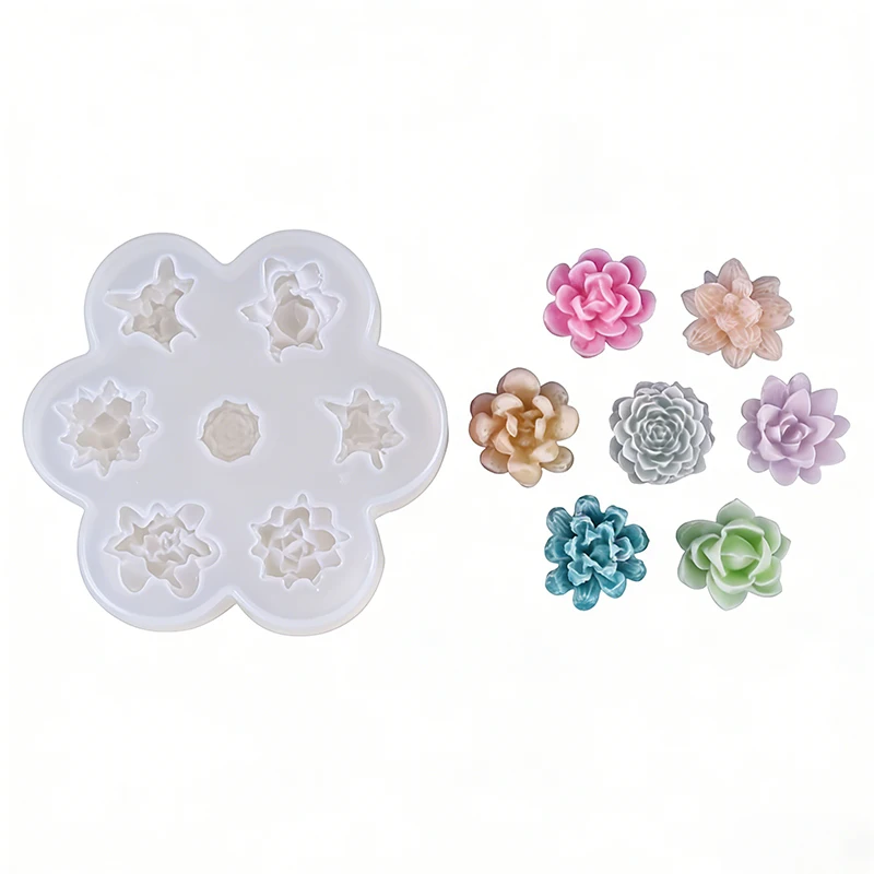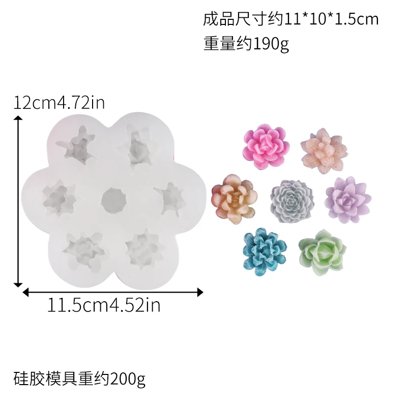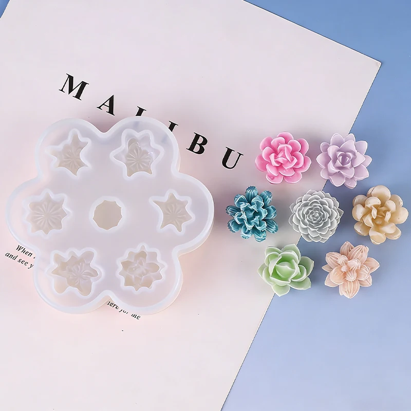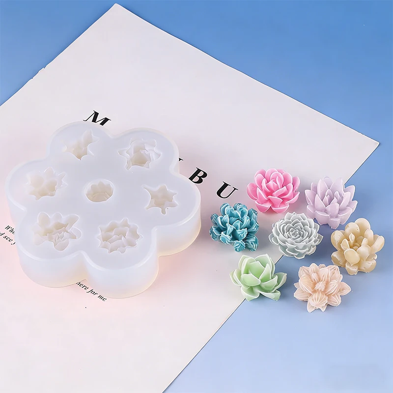 7pcs Succulent Flowers Candle Mold 3D Cactus Lotus Rose Soap Plaster Crafts Mold DIY Chocolate Fudge Pastry Cake Silicone Molds