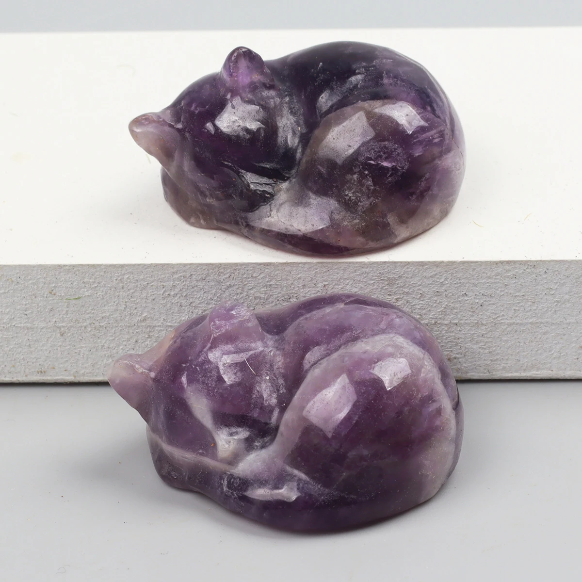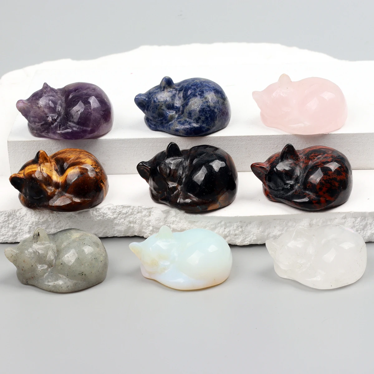 Various Crystal Energy Stones Carved Cats Rose Quartz Kitten Figurine, Natural Stone, Jade Mini Sleeping Cat, Chakra, Home Decor