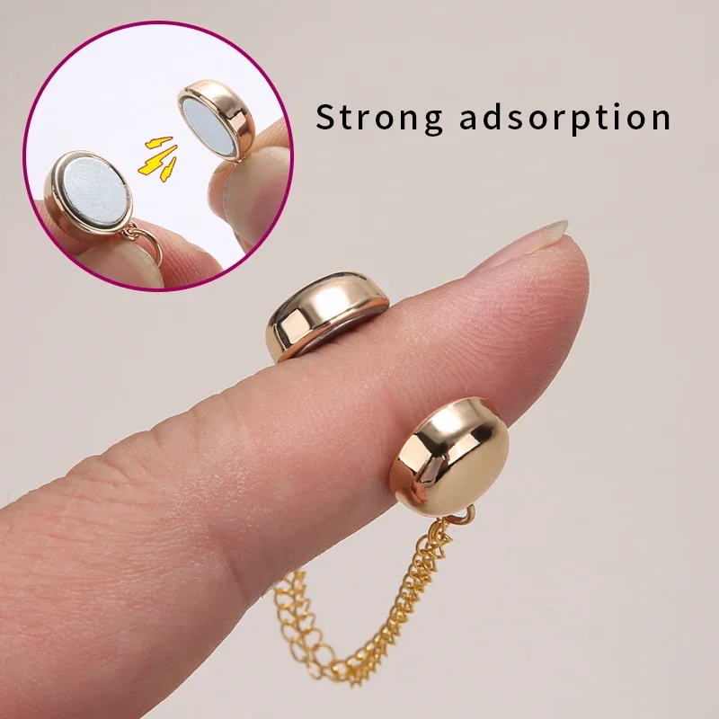 Multi-Function Magnetic Clothing Clip with Chain Metal Buttons Clip Clothes Scarf Trouser Legs Cuff Fixing Magnet Pin Decor