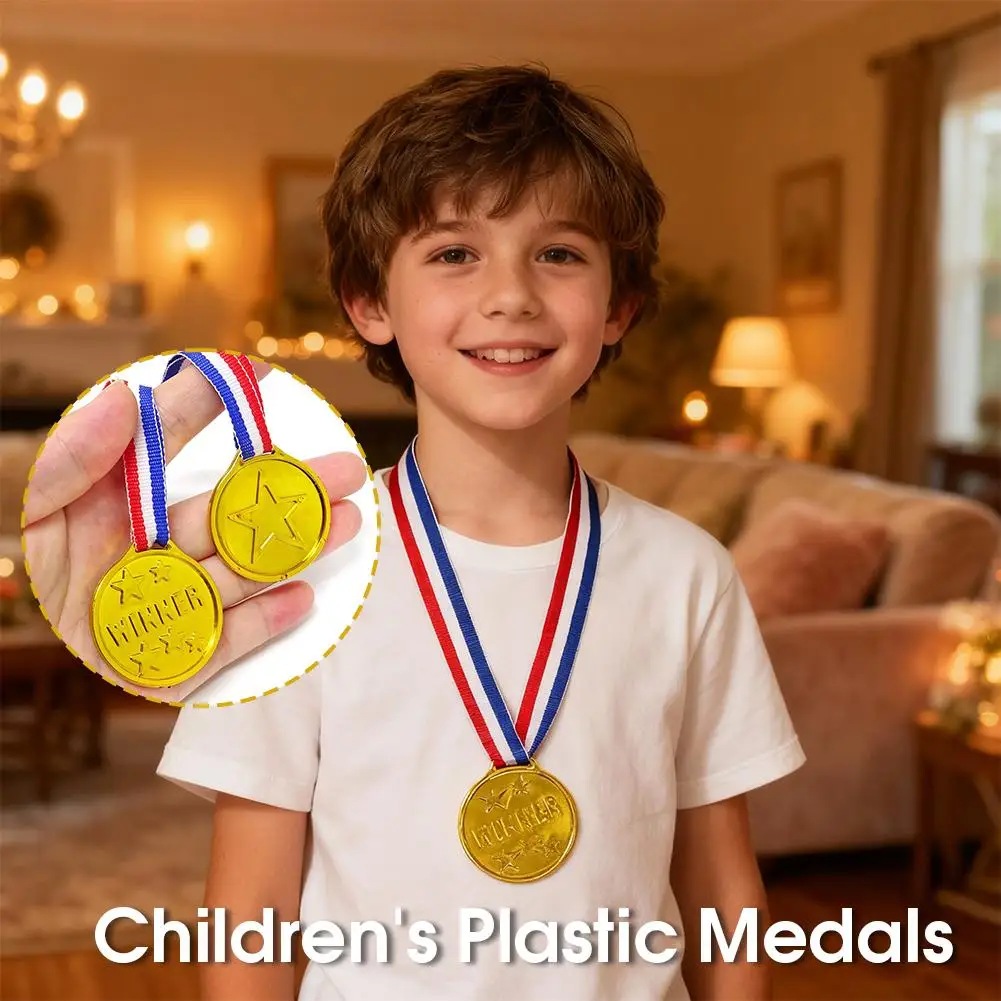 10/20pcs Plastic Gouden Winner Award Medailles Kinderen Verjaardagsfeest Favorieten Sportspel Prijs Speelgoed Voetbal Voetbalfee