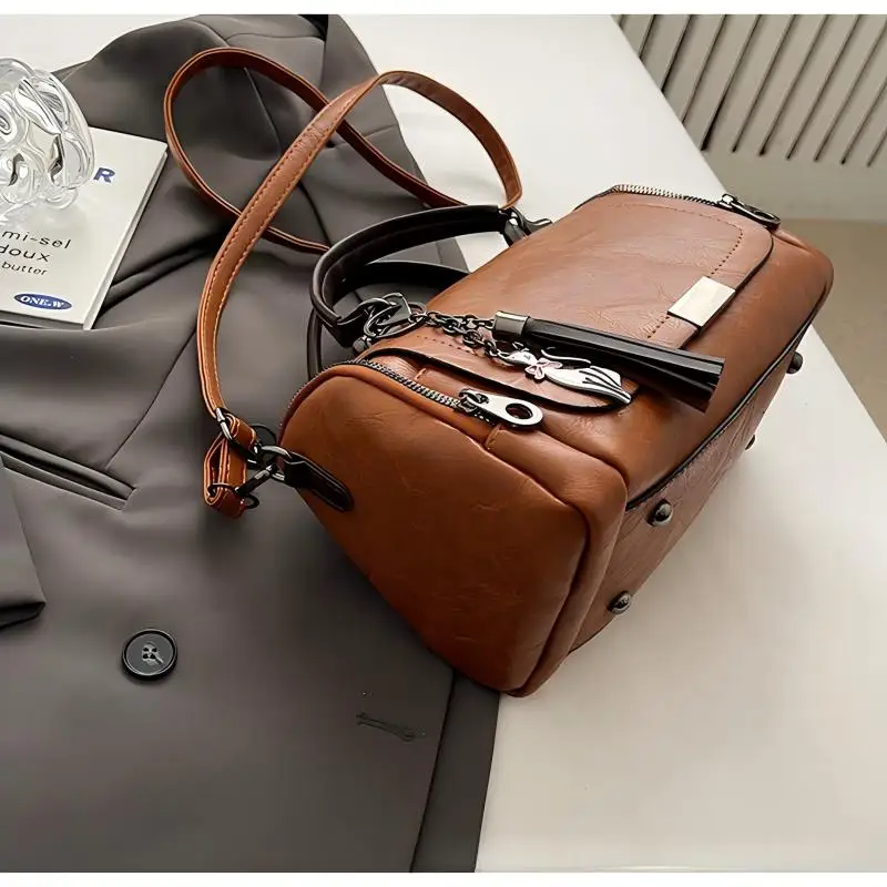 HOMEFISH Large Capacity Shoulder Bag for Women with Tassel Decoration Fashion Detachable Chain Boston Handbag Shoulder Bag
