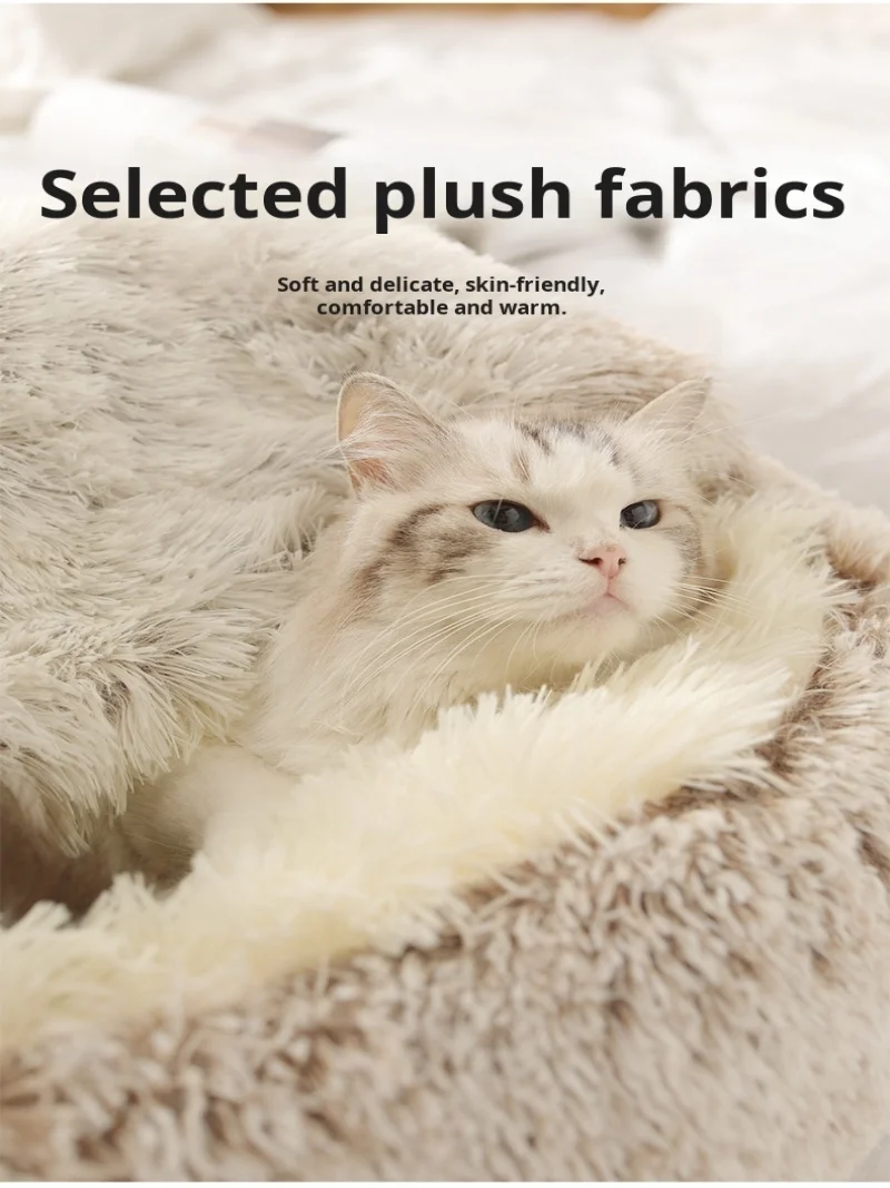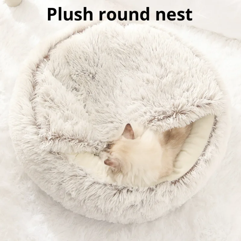 Winter Warm Cat Kennel Soft Plush Round Cat Bed Deep Sleep Half Pack Comforter Dog Nest Cave Shell Sleeping for Small Dog Kitten