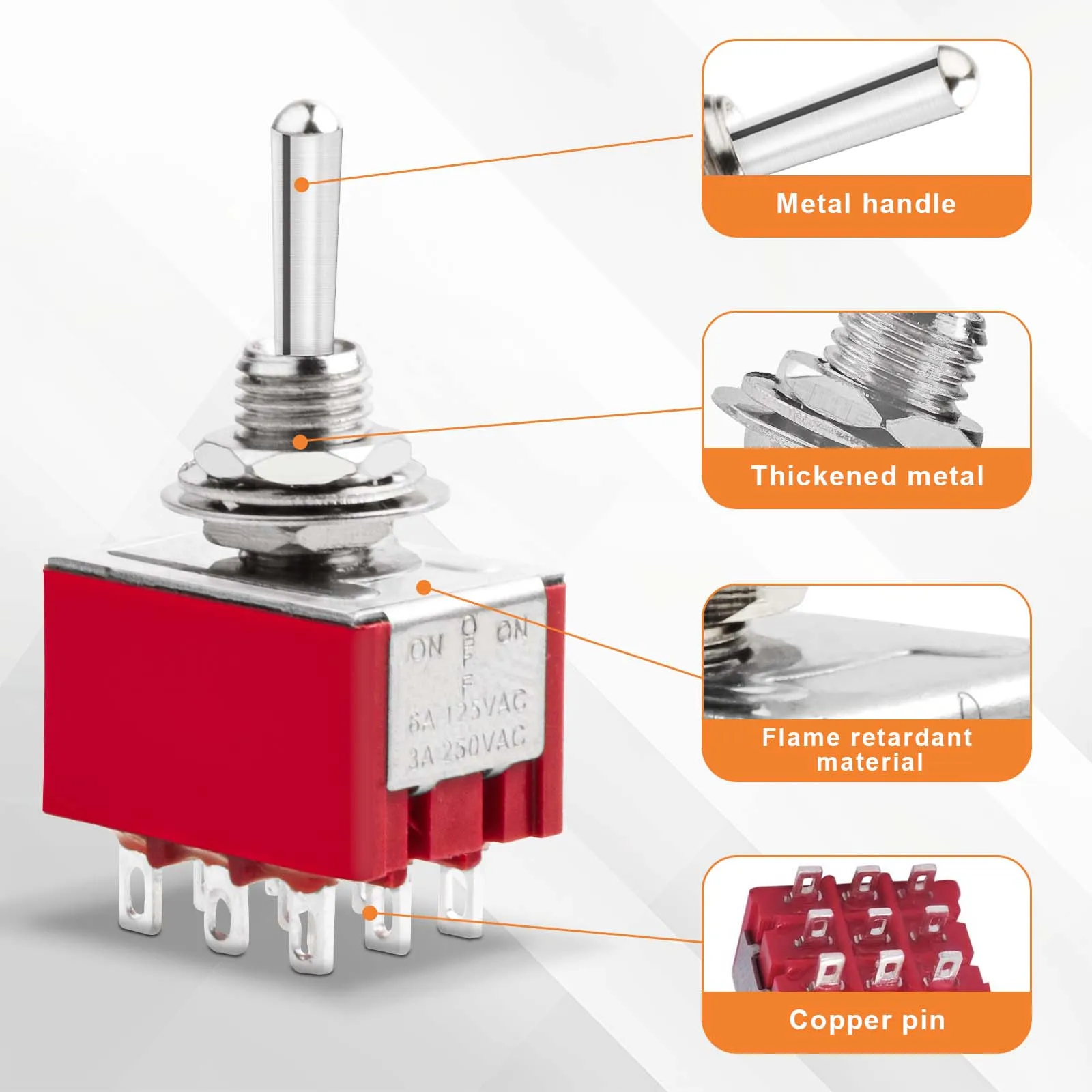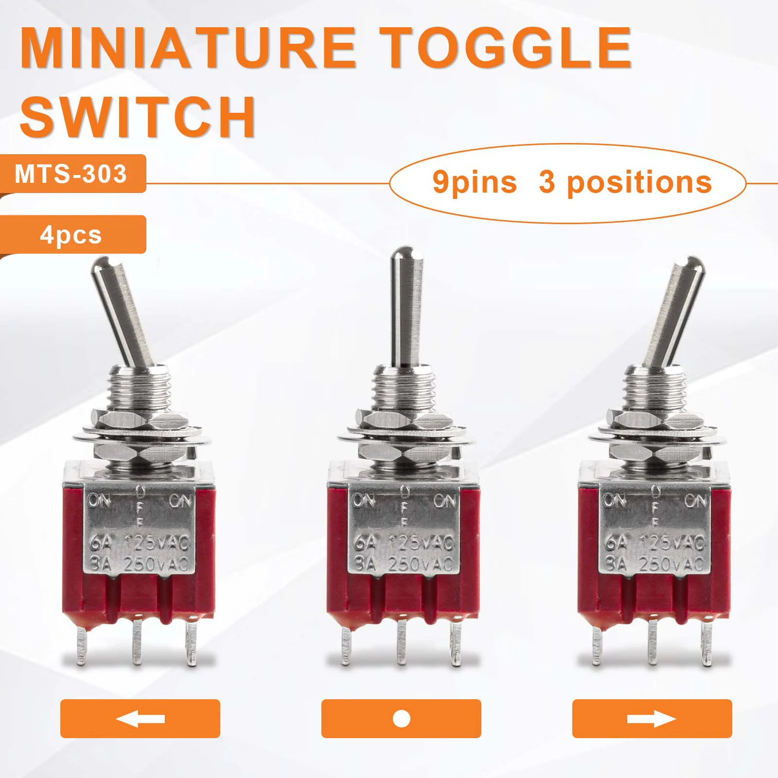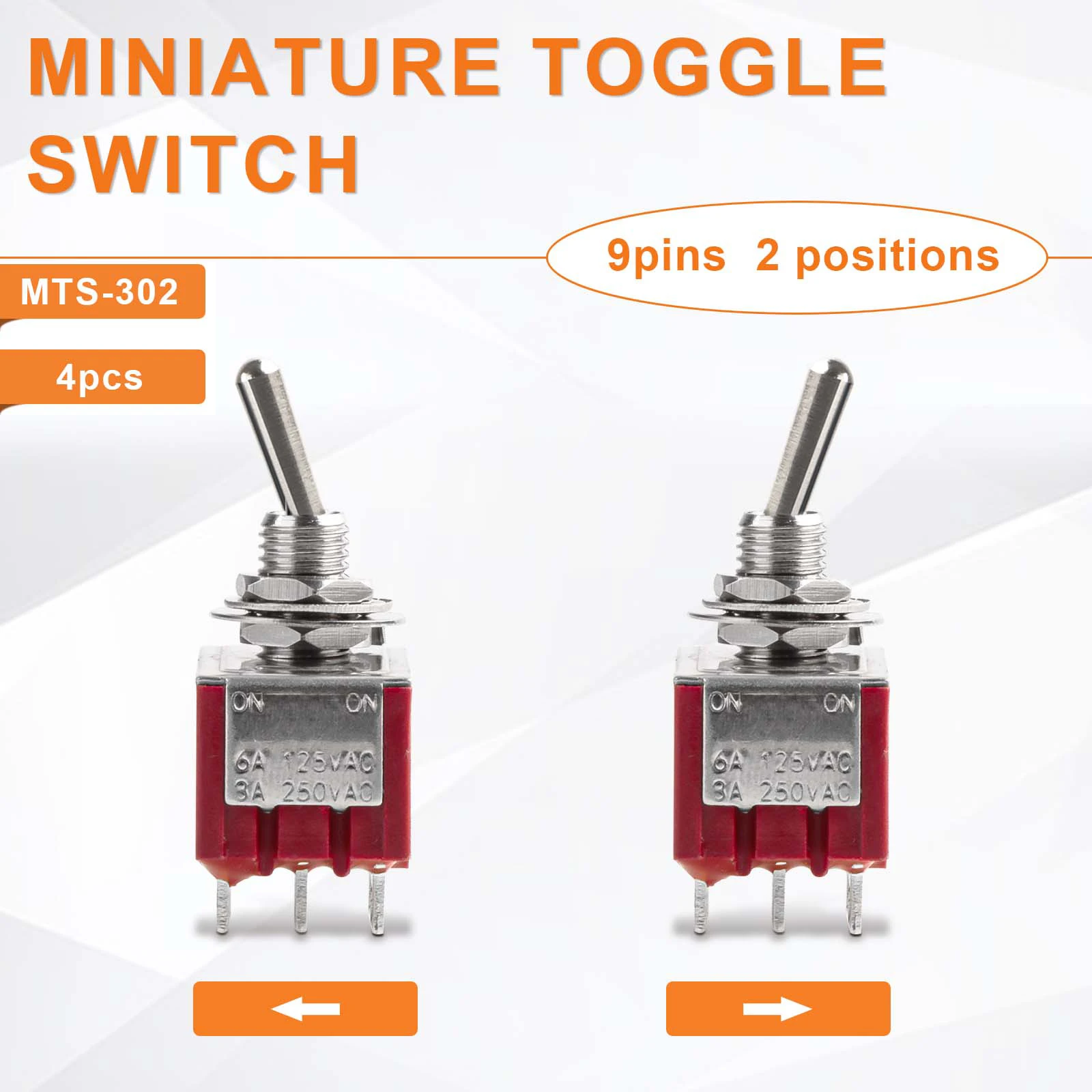 4pcs 9 Pin Toggle Switch 2 Position 3PDT Miniature Mts-302 ON/ON 6A 125V 3A 250V For Car Dash Dashboard Electronic