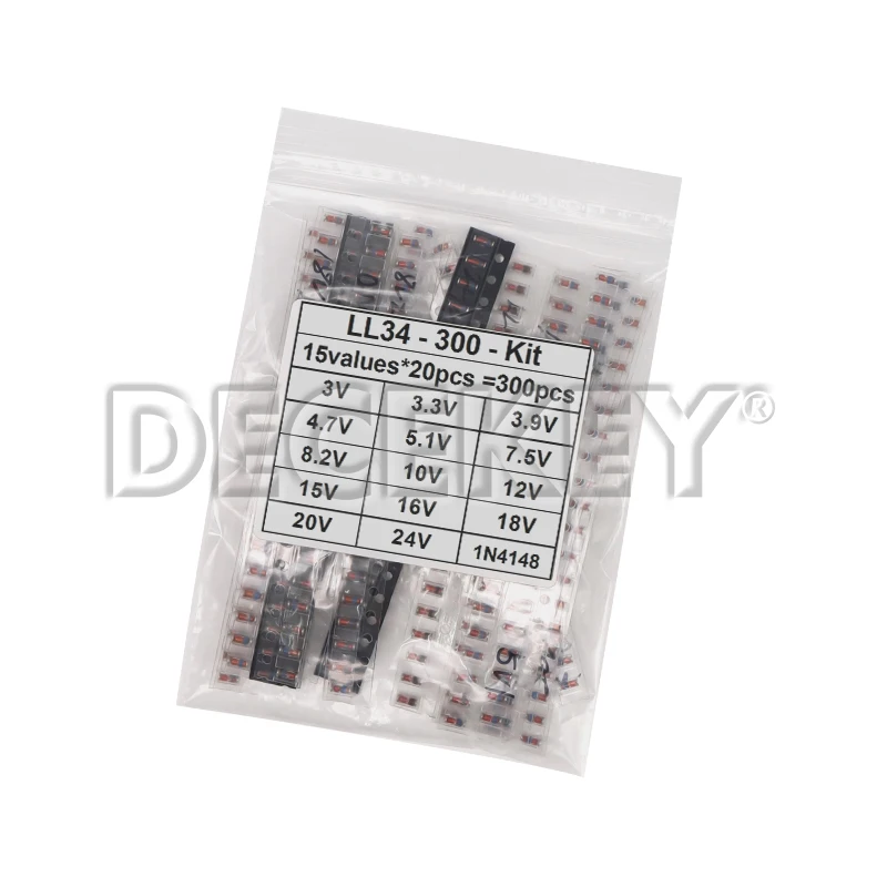 300PCS SMD LL34 Zener Diode Kit 0.5W 1/2W 3V-24V 2V-39V SMD Diode Set 1N4148