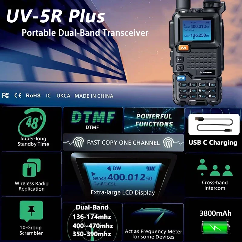 Quansheng UV 5R Plus UHF VHF Walkie Talkie Communication Fm Two Way Radio Station Type-C Wireless Set Long Range K5 Ham Receiver