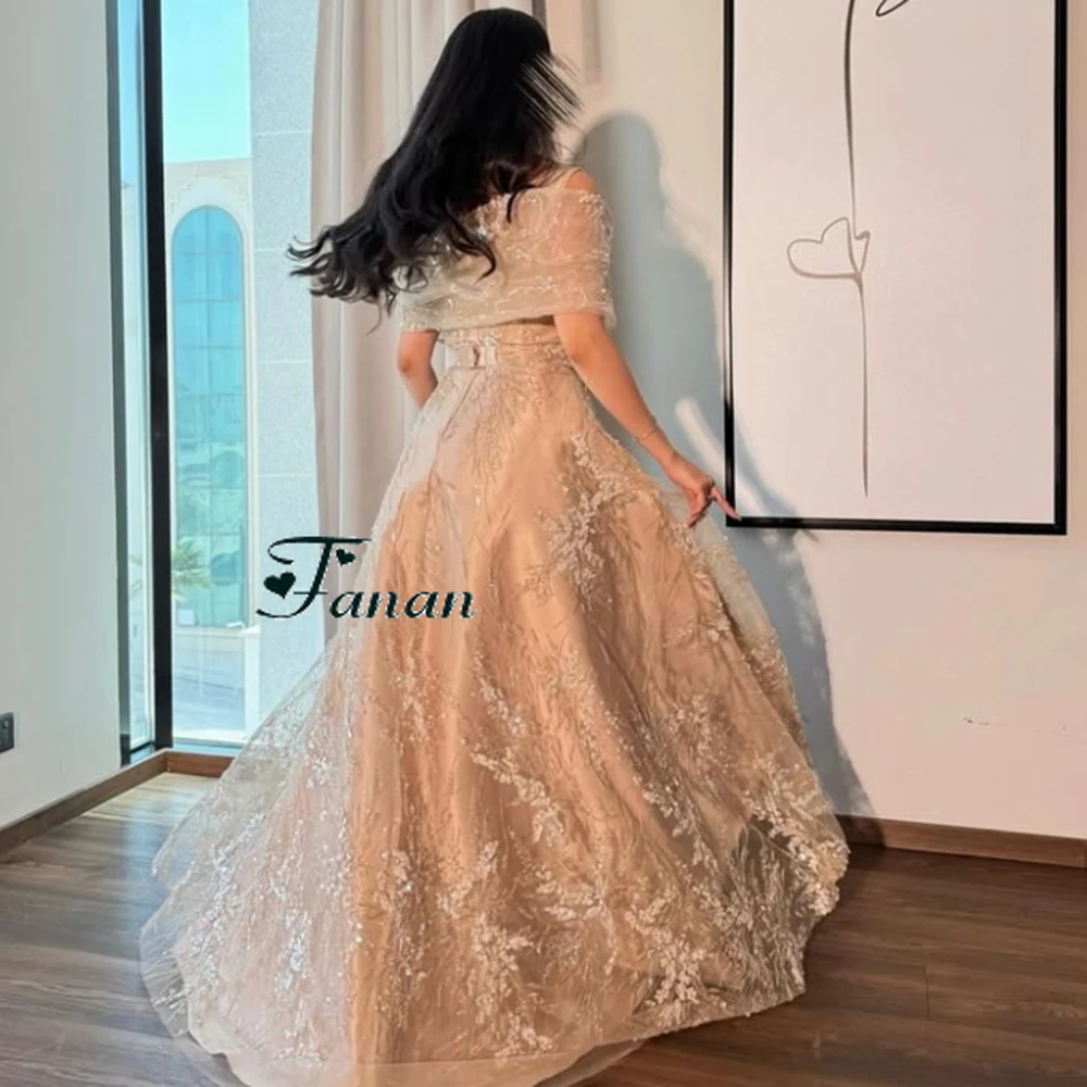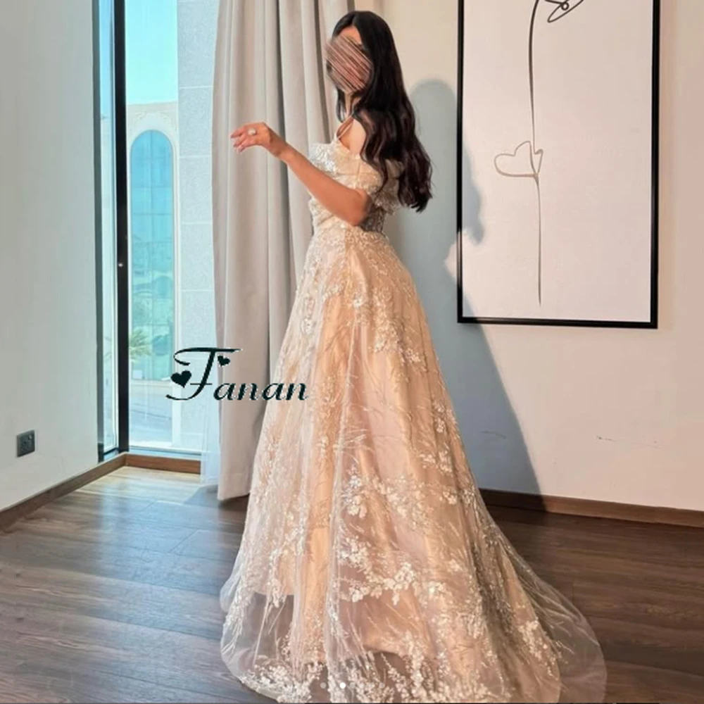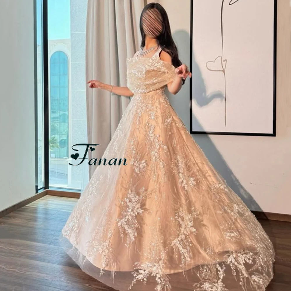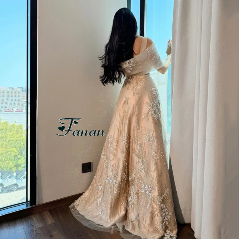 Customized Beige Off the Shoulder A-line Evening Dress Lace Appliques Spaghetti Strape Party Prom Gown Floor Length Prom Gowns